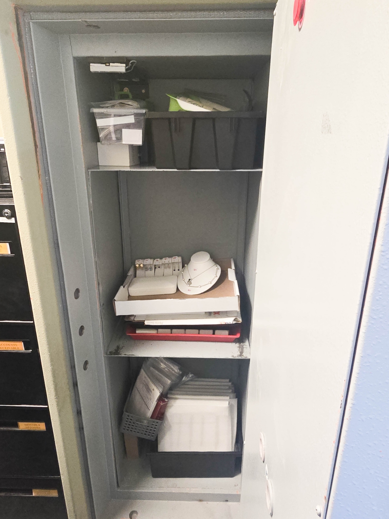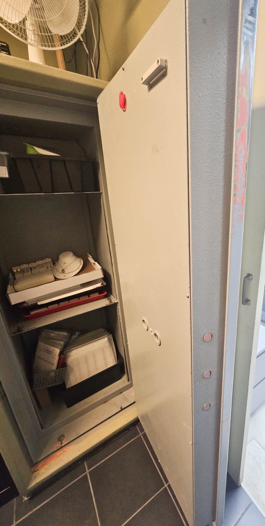 65" X 25" X 29" OUTSIDE / 15" X 19" X 59" ON INSIDE (APPROX. 5000LBS +), EXTRA FIRE PROOFING, CAN HAVE DUAL COMBINATIONS SO THAT NO SINGLE PERSON CAN OPEN IT WITHOUT BOTH COMBINATIONS.
