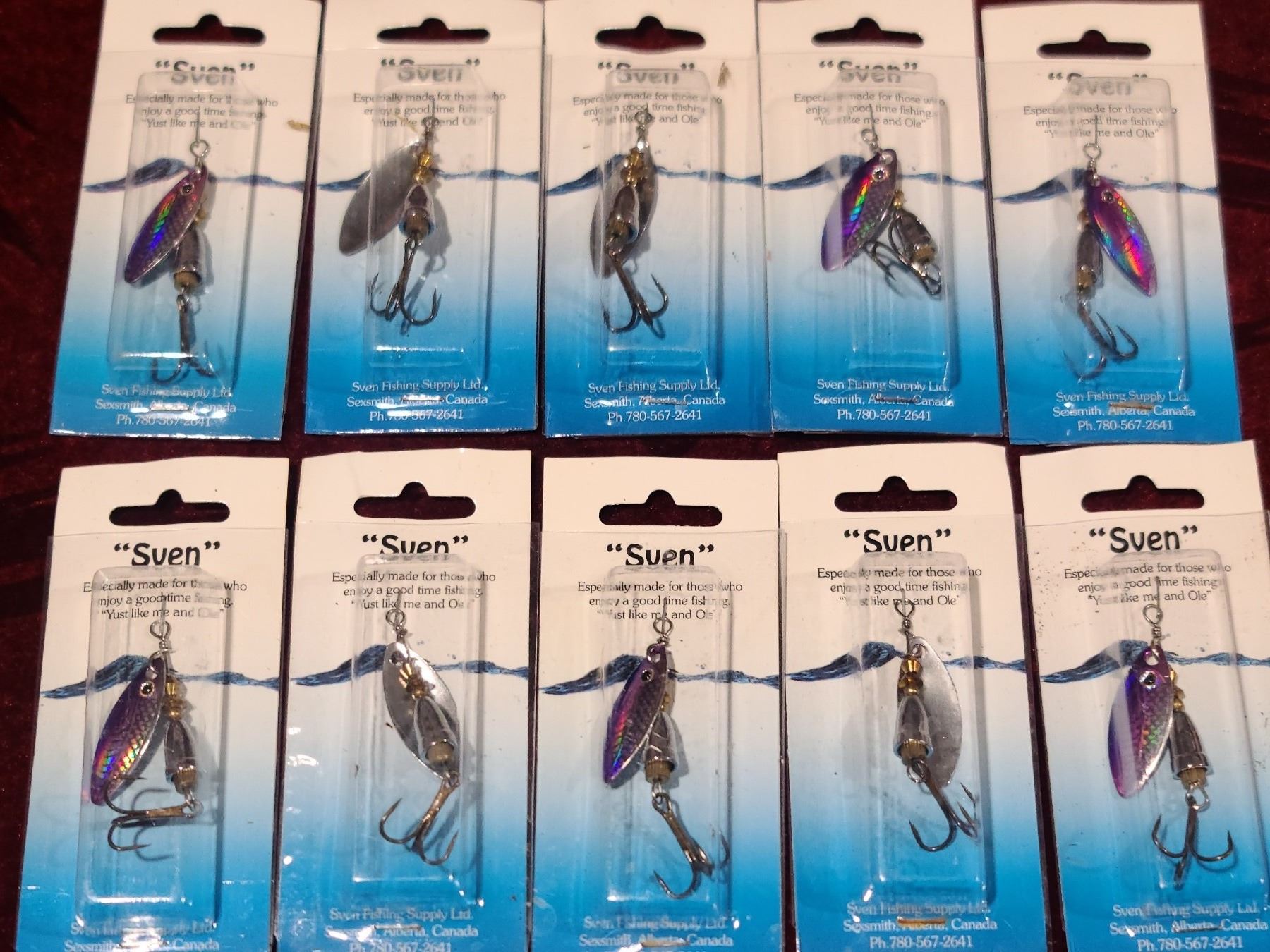 TEN PURPLE AND SILVER SILVER TREBLE HOOK SPINNER LURES