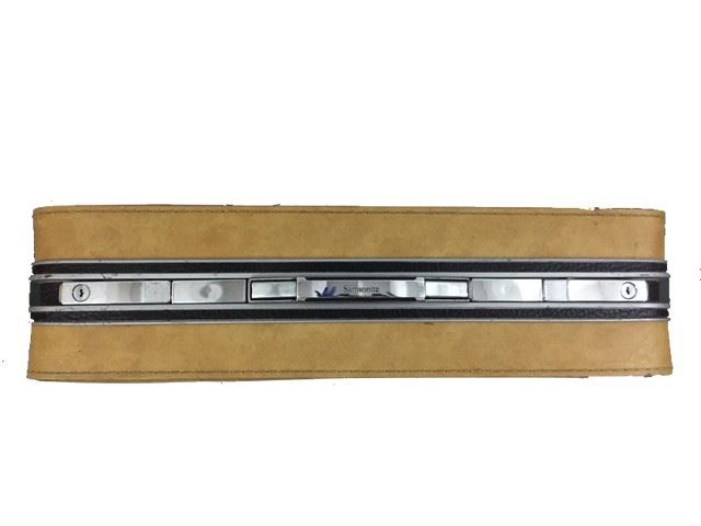 THE SHIPPING NEWS - Yellow “Samsonite” Suitcase - This pristine suitcase is made from yellowish-tan vinyl and was made by “Samsonite.” The 25 1/2” x 19 1/2” x 6 1/4” suitcase features double lock closures on the top, a collapsible exterior handle, and brownish-gold floral-patterned lining on the interior. A beautiful and high-quality piece of authentic MIRAMAX movie memorabilia!! This item is over-sized, shipping rates determined by the winner's zip code, please E-Mail for shipping rates before bidding.