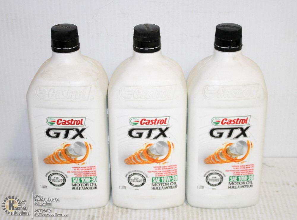 THREE 1 LITRE JUGS OF CASTROL SAE 10W-30 MOTOR OIL