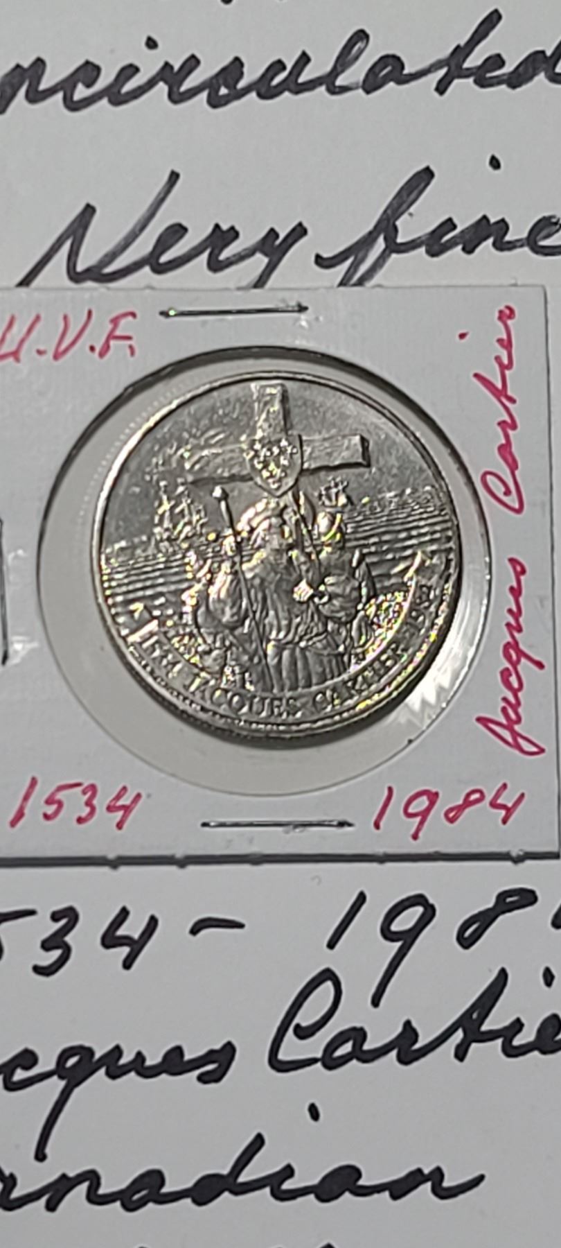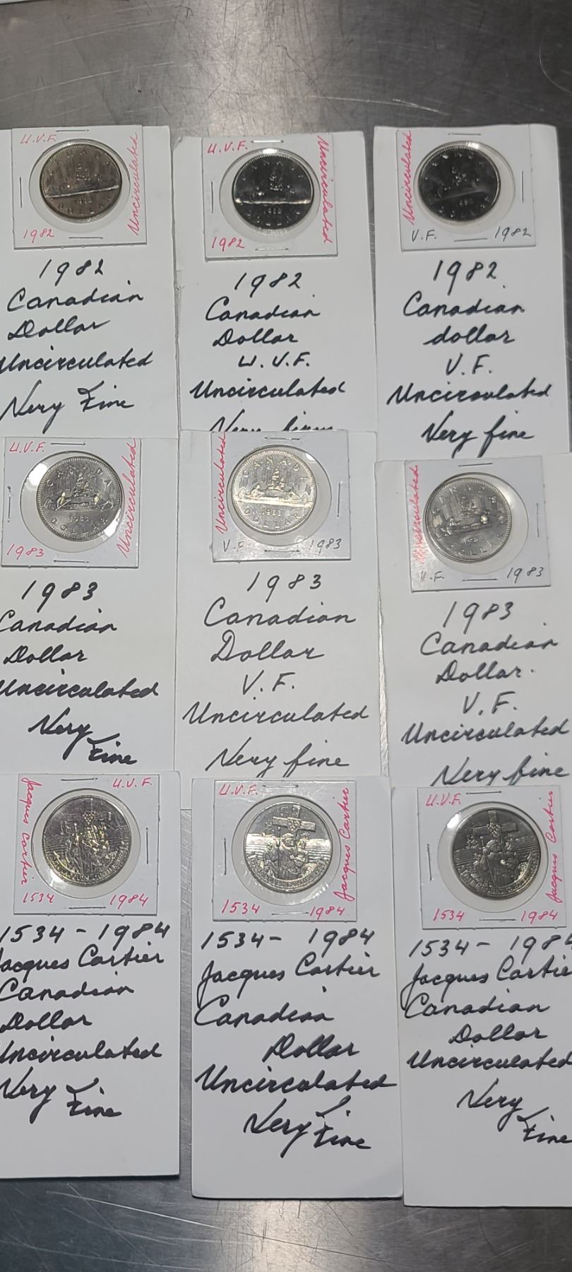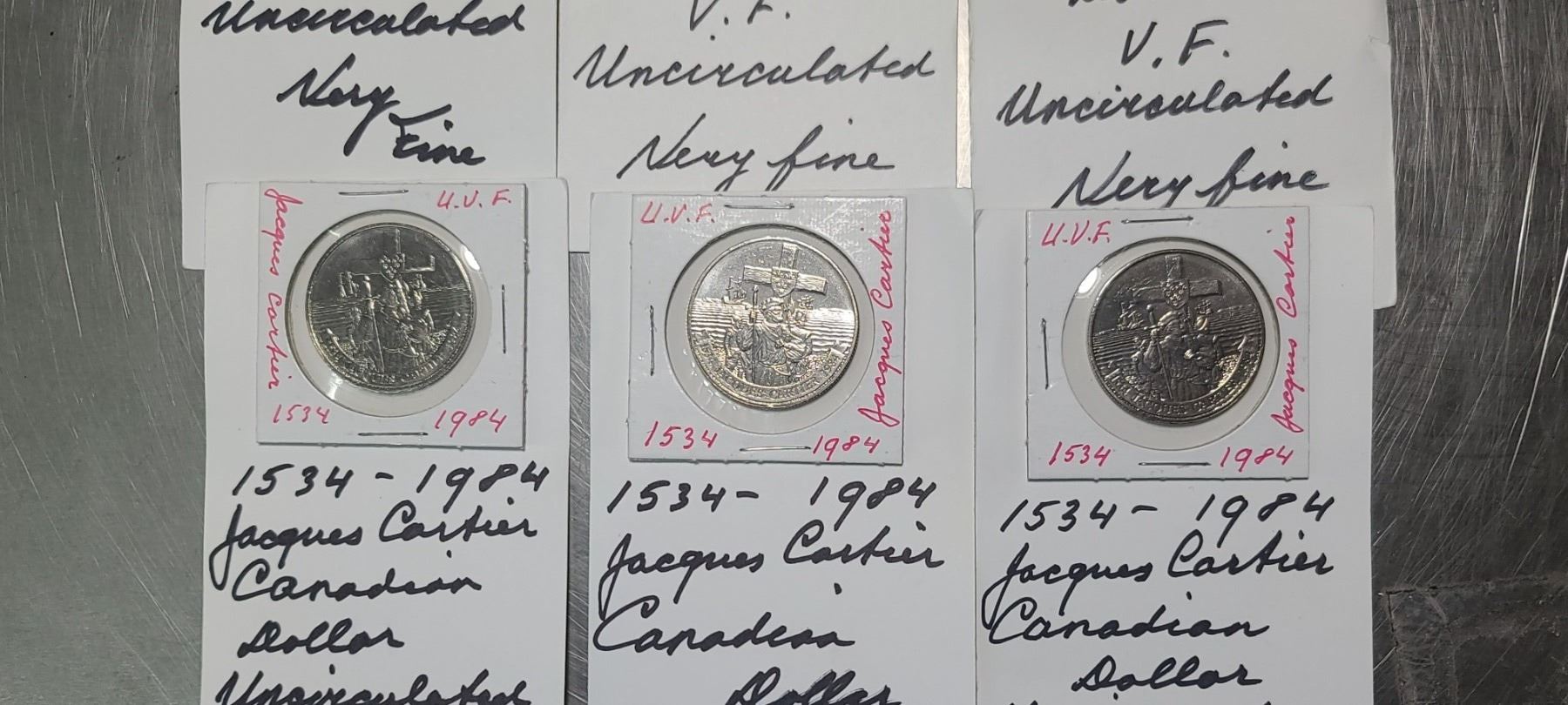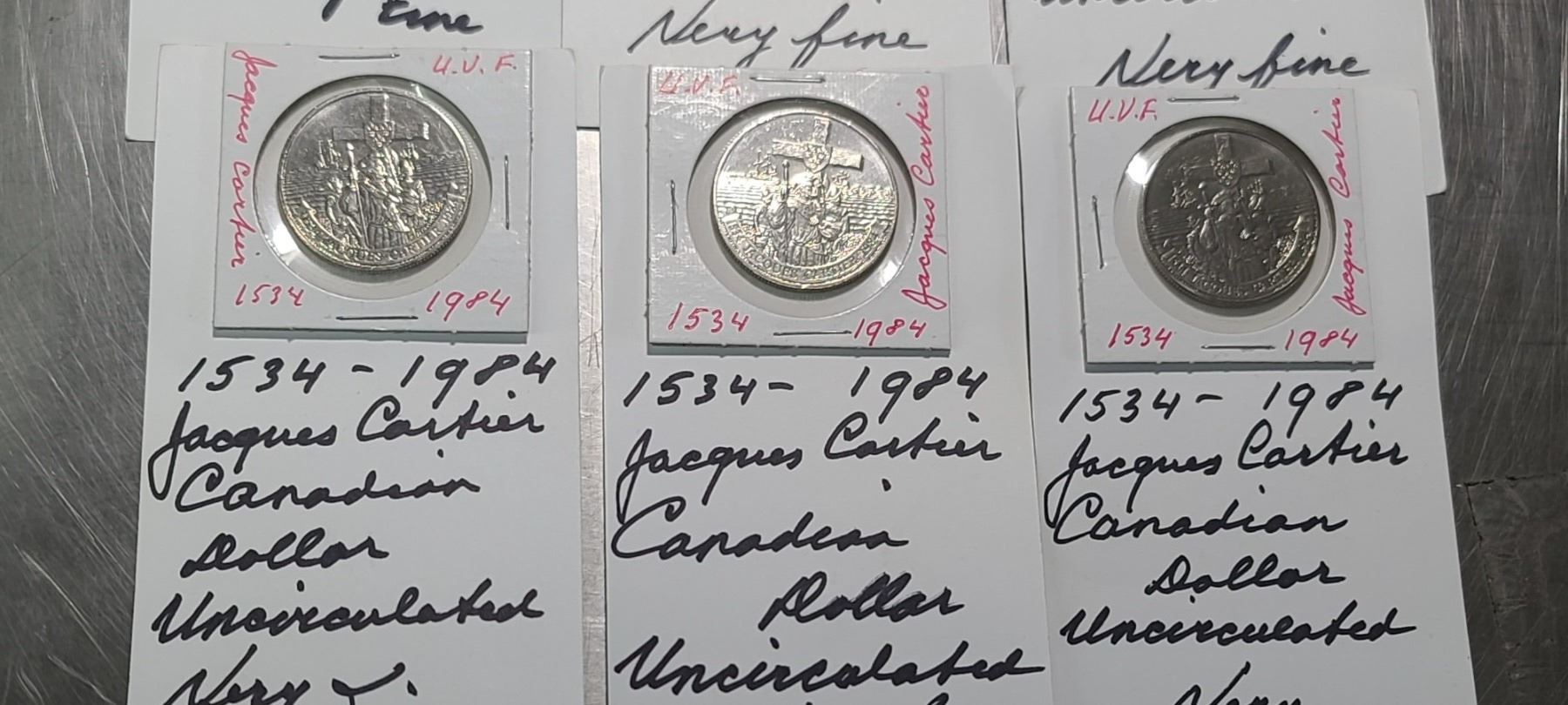 THREE 1982, THREE 1983, THREE 1534-1984 JAQUES CERTIER $1 UNCIRCULATED COINS