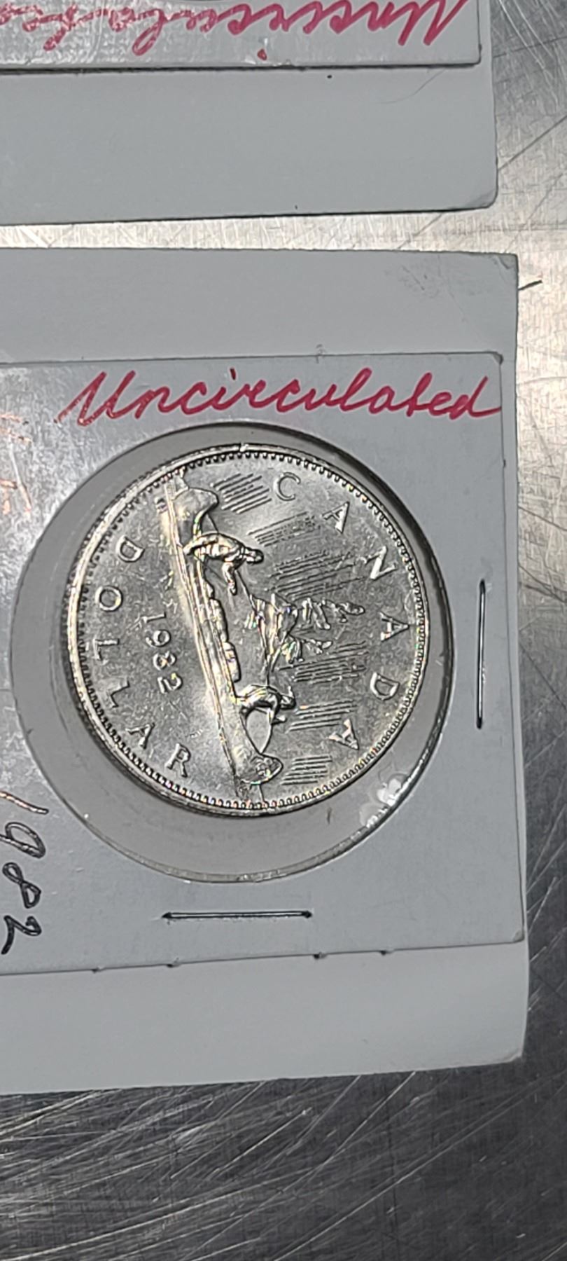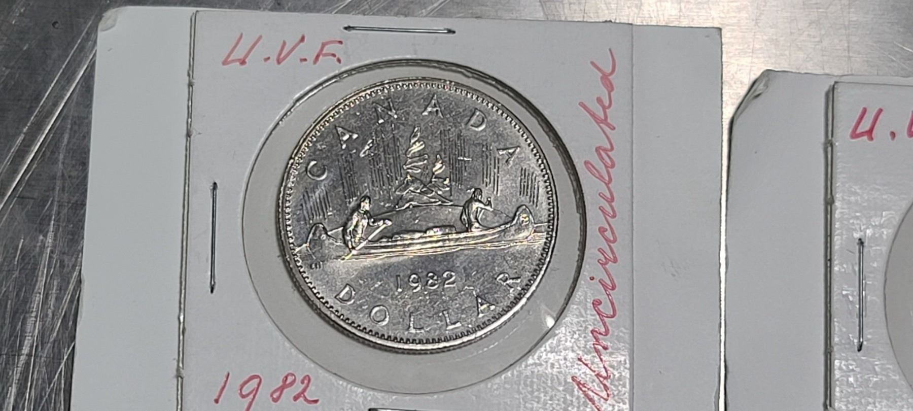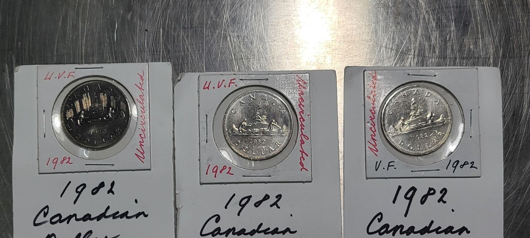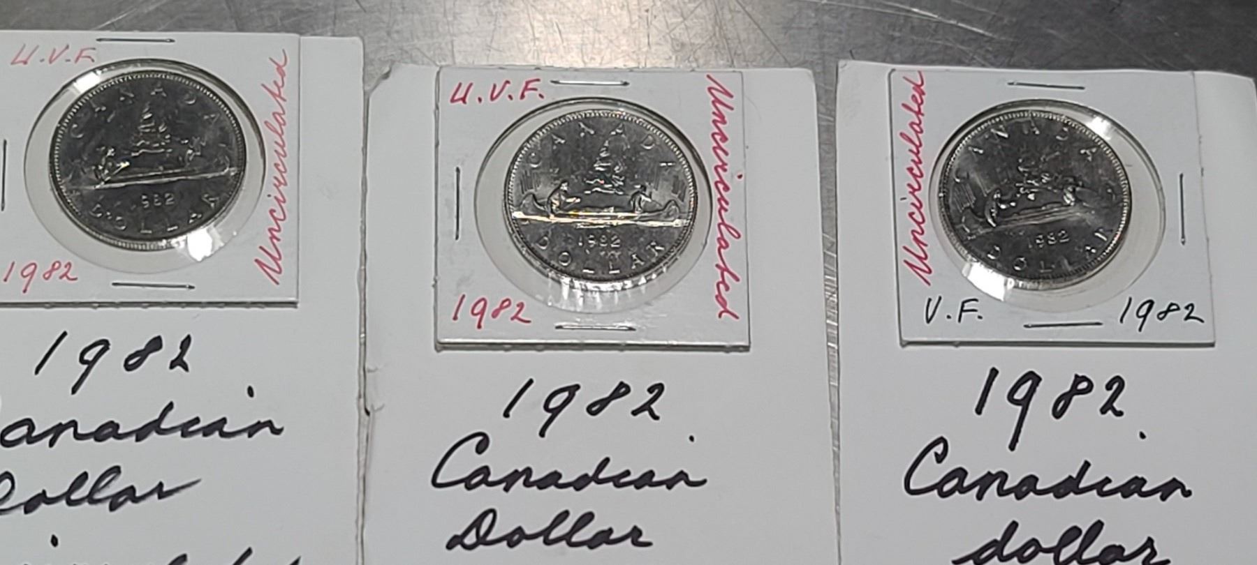 THREE 1982, THREE 1983, THREE 1534-1984 JAQUES CERTIER $1 UNCIRCULATED COINS