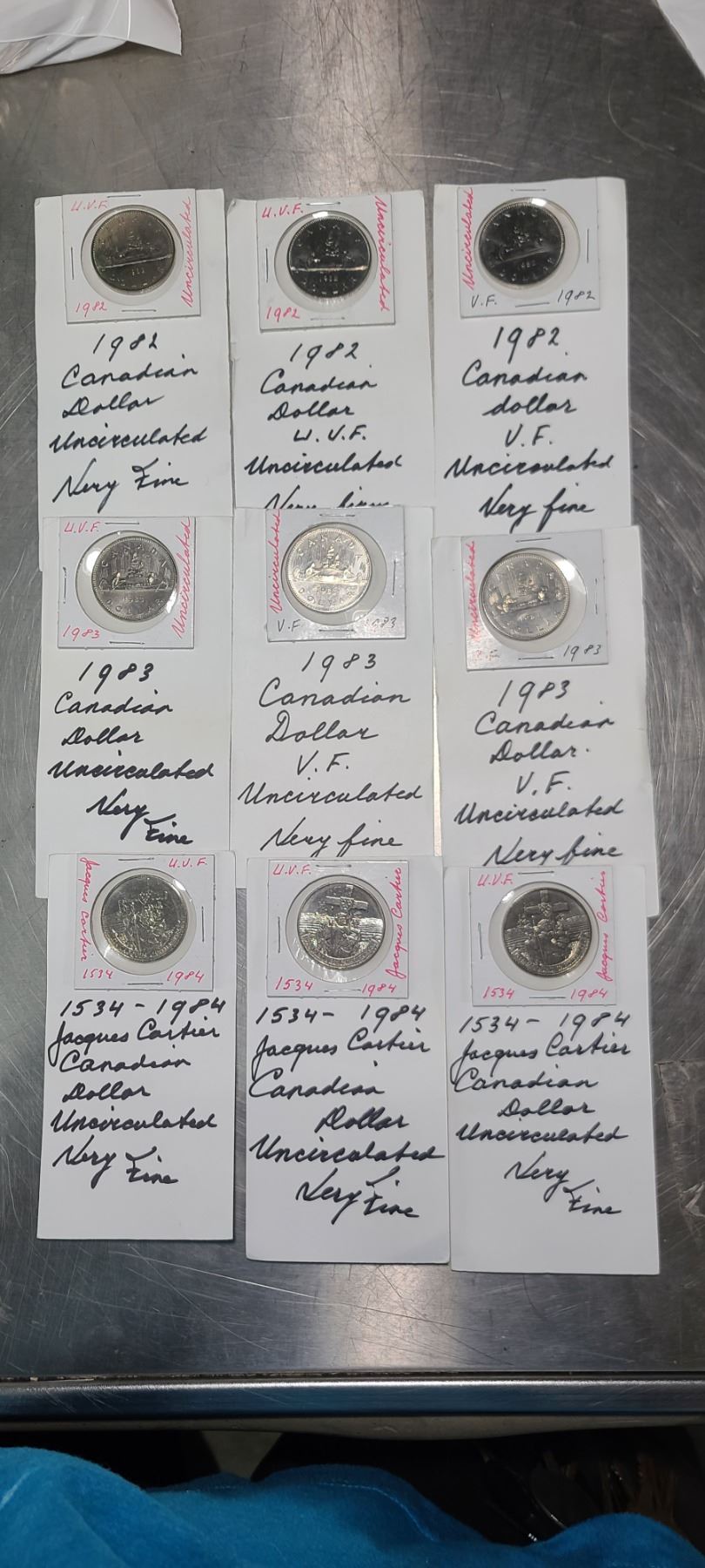 THREE 1982, THREE 1983, THREE 1534-1984 JAQUES CERTIER $1 UNCIRCULATED COINS