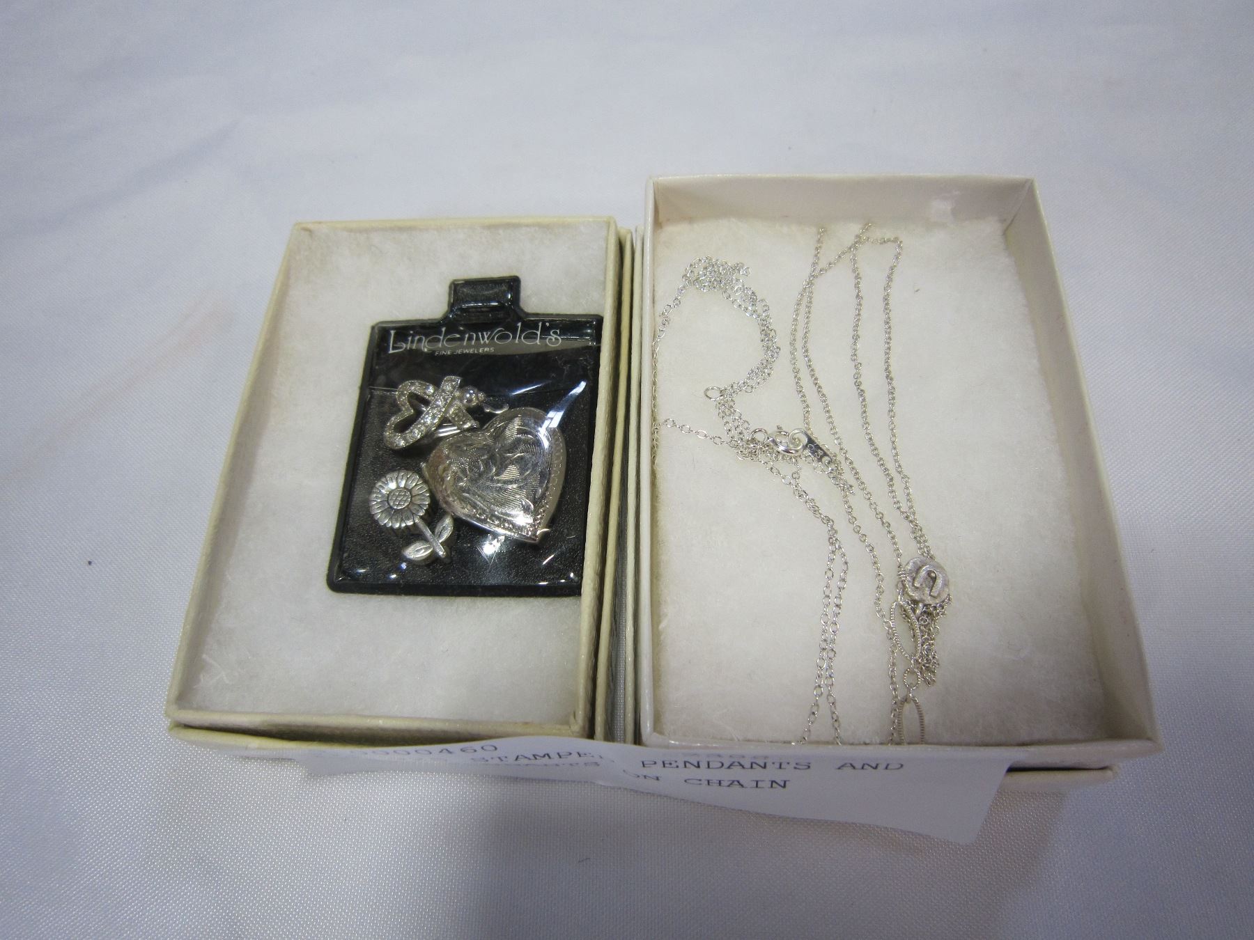 THREE 925 STAMPED PENDANTS AND TWO 925 PENDANTS ON CHAIN