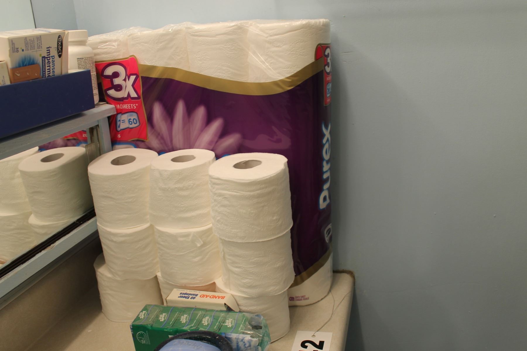 TOILET PAPER, BANDAIDS, SOAP, SEWING STOOL, ETC
