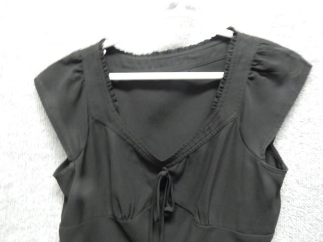 TOP - V NECK - BLACK - RUFFLE ON NECK & BOW TIE - SZ MED