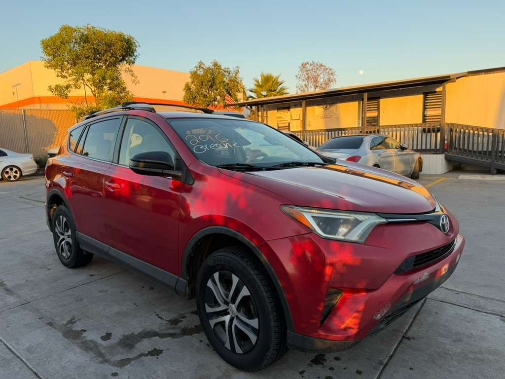MAKE: TOYT || MODEL: RAV4 || YEAR: 2016 || TITLE: O/S-T SMOG-2 DAYS || VIN: JTMZFREV0GJ090477 || MILES: 143766 || ENGINE: 4 CYL / 2.5 L || COLOR: RED || KEYS: Yes || *Green Light