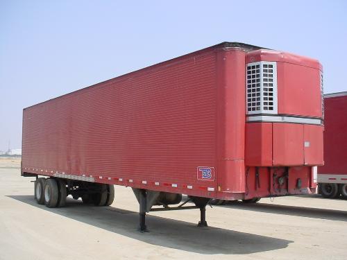 1985 TRAILMOBILE 45ft. X 96in. T/A ALUMINUM REEFER TRAILER, s/n 1PT01AJH6F9008633: THERMO KING SB-II MAX REEFER, SLIDING TANDEMS, RIBBED SIDES, WOODEN FLOOR, ROLL-UP DOOR, SPRING SUSPENSION, LANDING GEAR, 11R22.5 TIRES, BUDD WHEELS