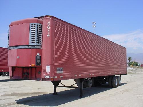1986 TRAILMOBILE 45ft. X 96in. T/A ALUMINUM REEFER TRAILER, s/n 1PT01AJH9G9004593: THERMO KING SBIII SR+ REEFER, SLIDING TANDEMS, RIBBED SIDES, WOODEN FLOOR, ROLL-UP DOOR, SPRING SUSPENSION, LANDING GEAR, 11R22.5 TIRES, BUDD WHEELS