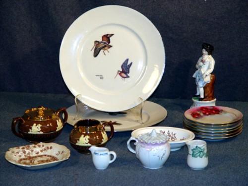 TRAY LOT CHINA INCL LYNN BOGUE HUNT BIRD PLATES