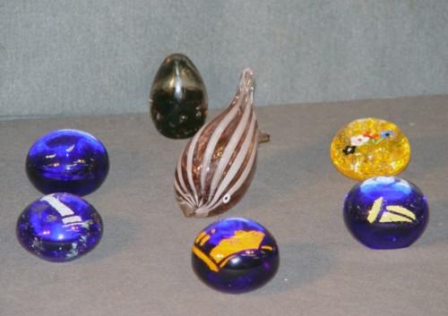 TRAY LOT OF 7 GLASS PAPERWEIGHTS