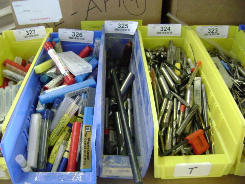 TUB OF MIXED SIZED END MILLS & MILLING DRILL BITS