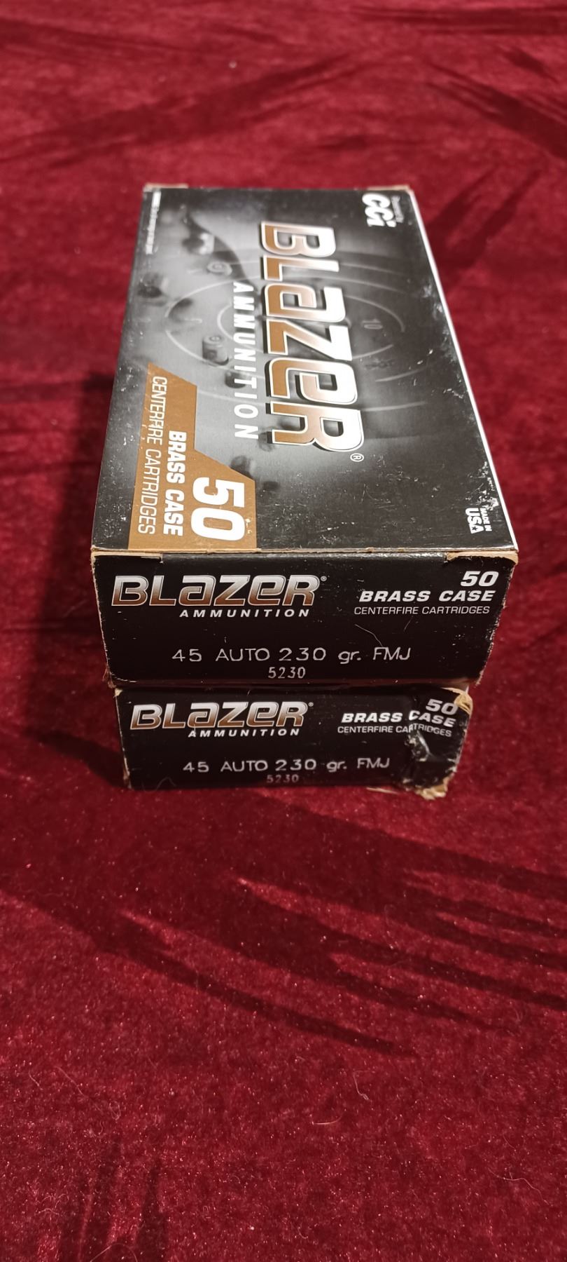 TWO BOXES OF .45 AUTO 230GR BLAZER (100 ROUNDS)