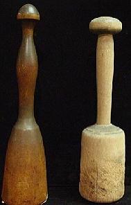 (one is unfinished) one has petticoat base, the unfinished masher has a mushroom top, circa mid/late 19th C.
