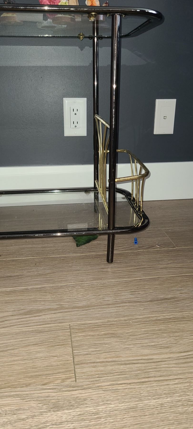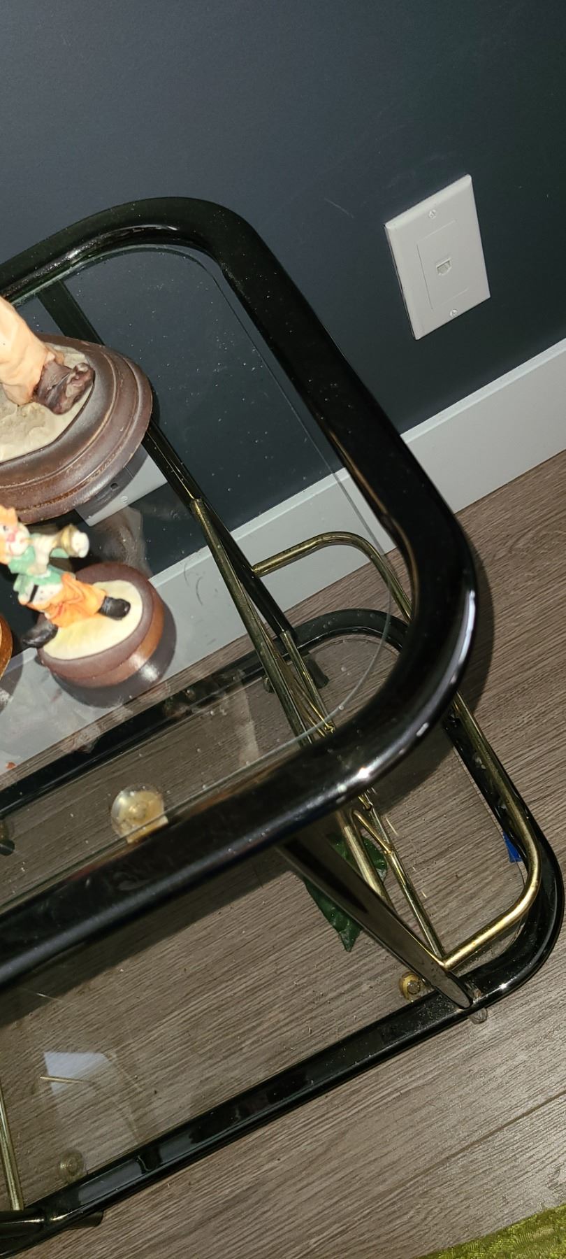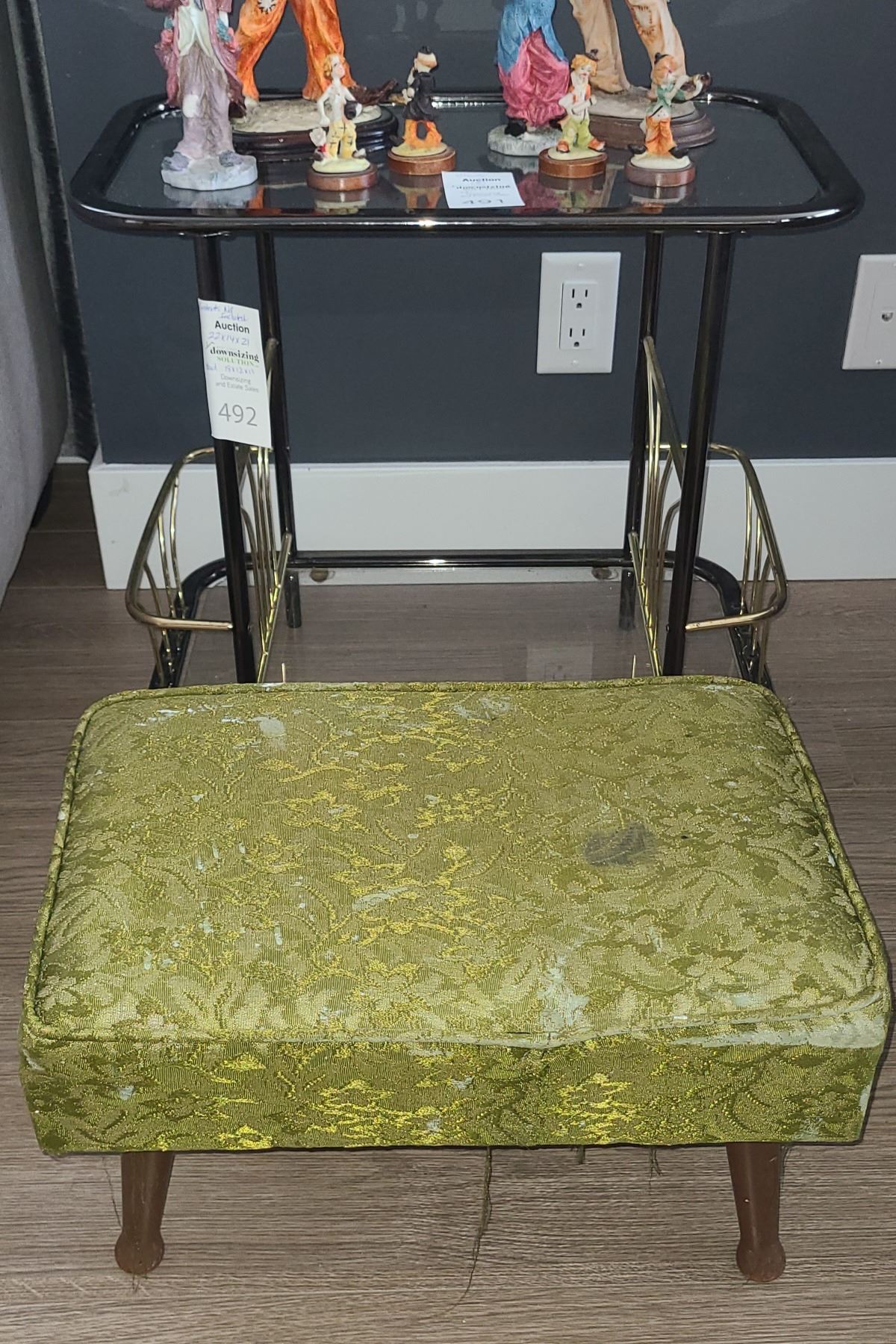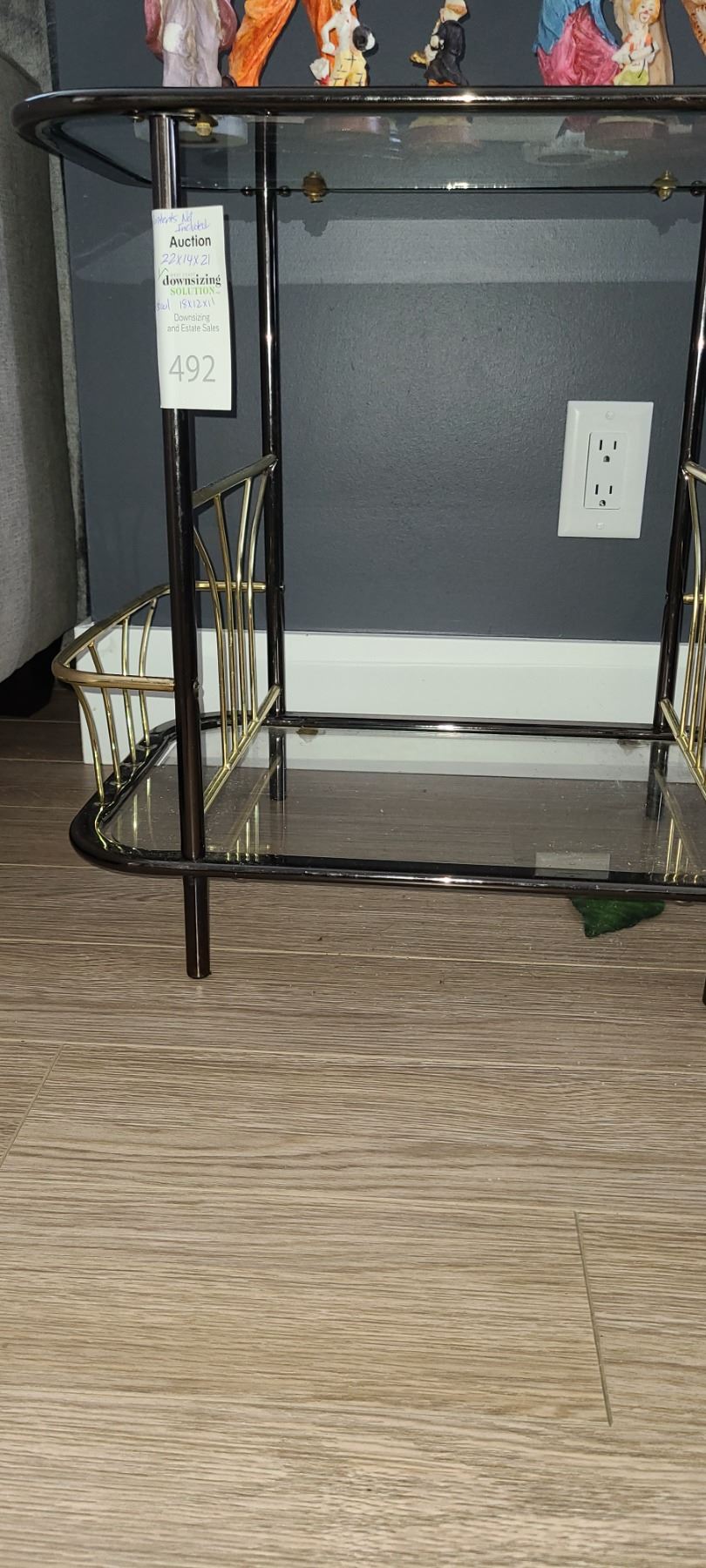 Glass and metal magazine table, 22x14x21. Stool 18x12x11. Contents on top not included. Pick up 10-11