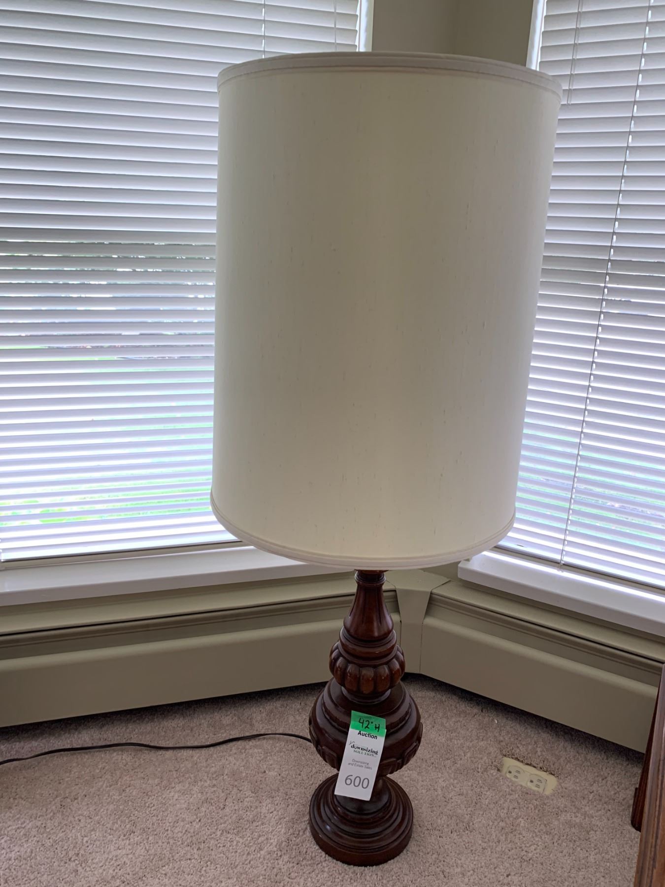 Table lamp with wood base, 42”. Pickup at 11 am, cat. C.