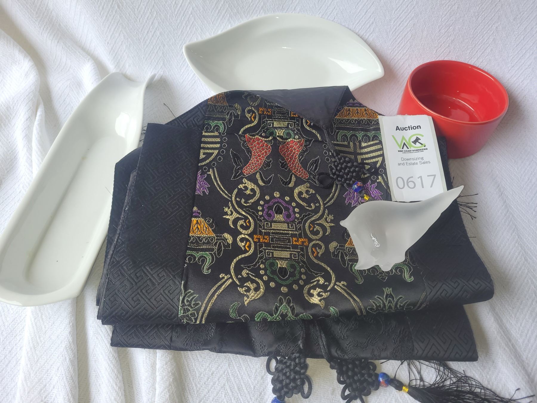 2 table runners, glass polar bear, dishes. Pickup at 9 am