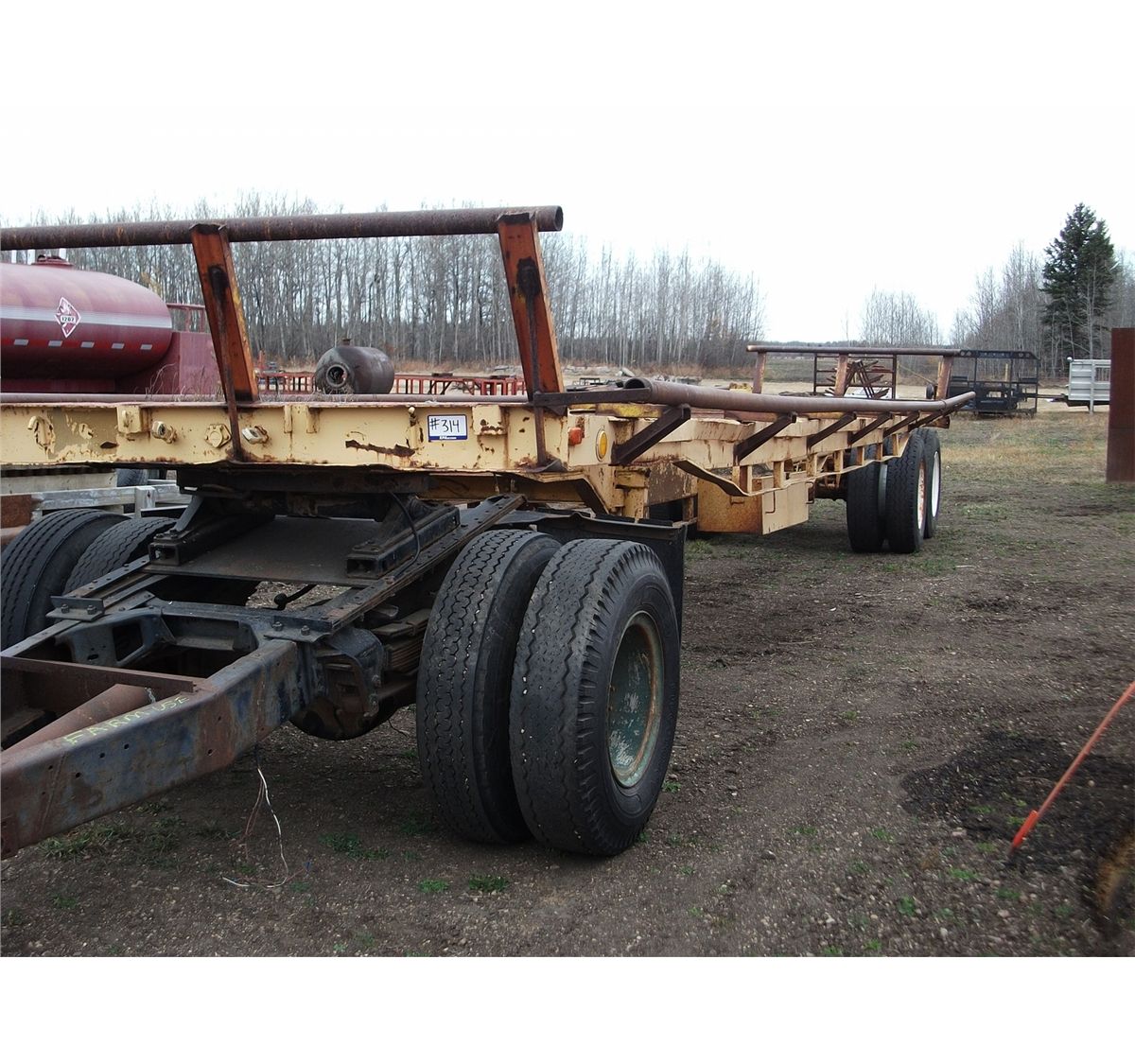 complete with bale rigging and converter, SN #farm use only; homebuilt; 45'; round bale hay trailer; 11 x 24.5 tires; hauls 20 bales