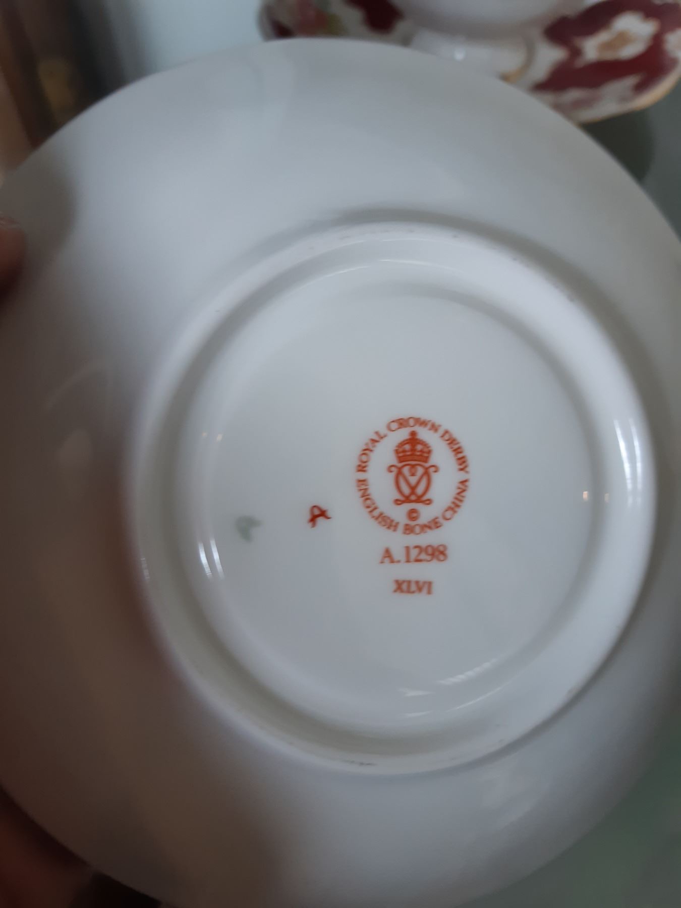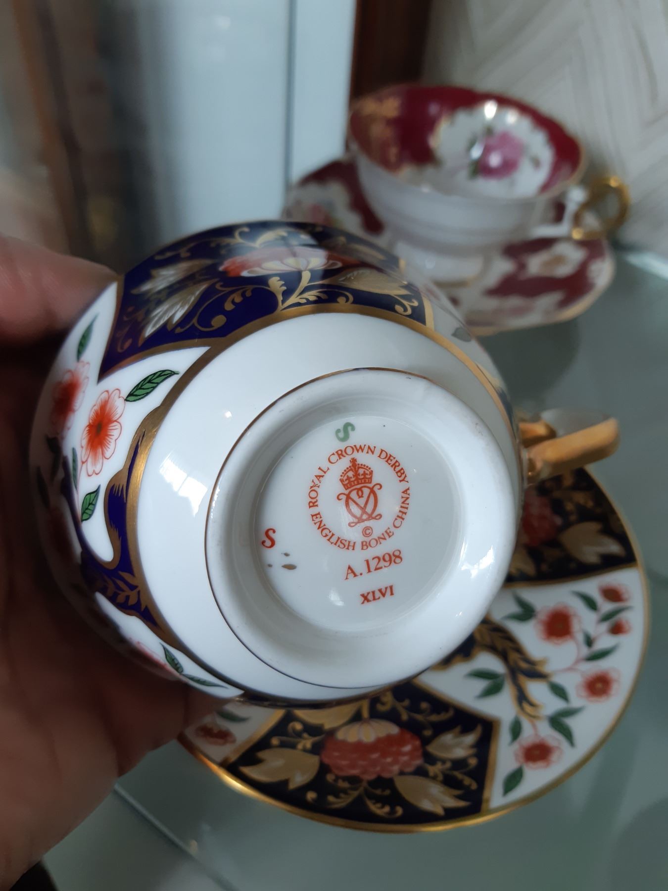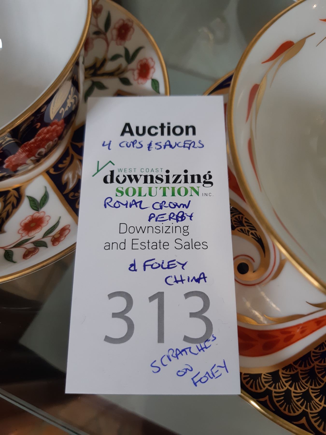 4 tea cups, Royal Crown Derby. Bring packing material. Pick up 9-10
