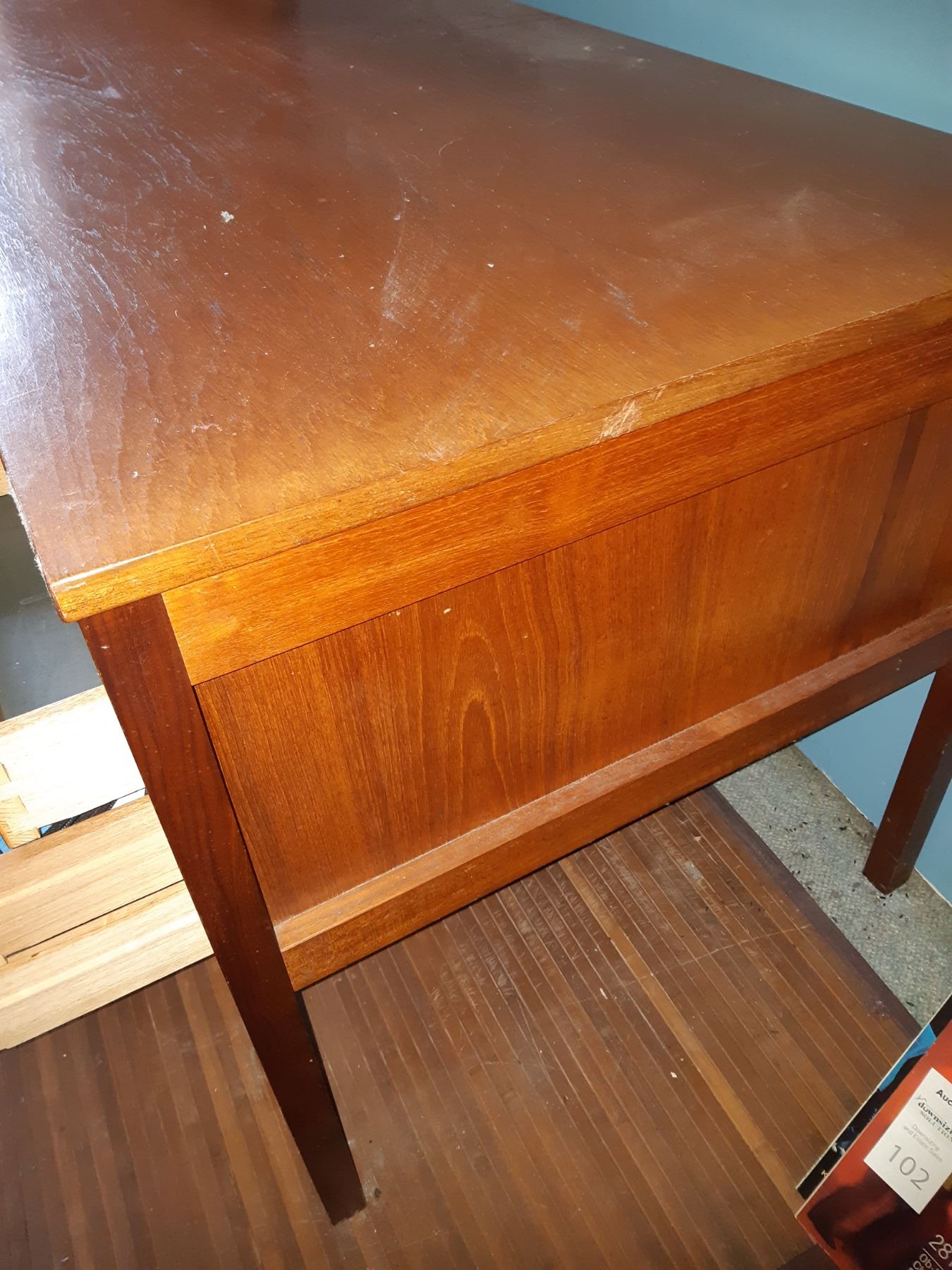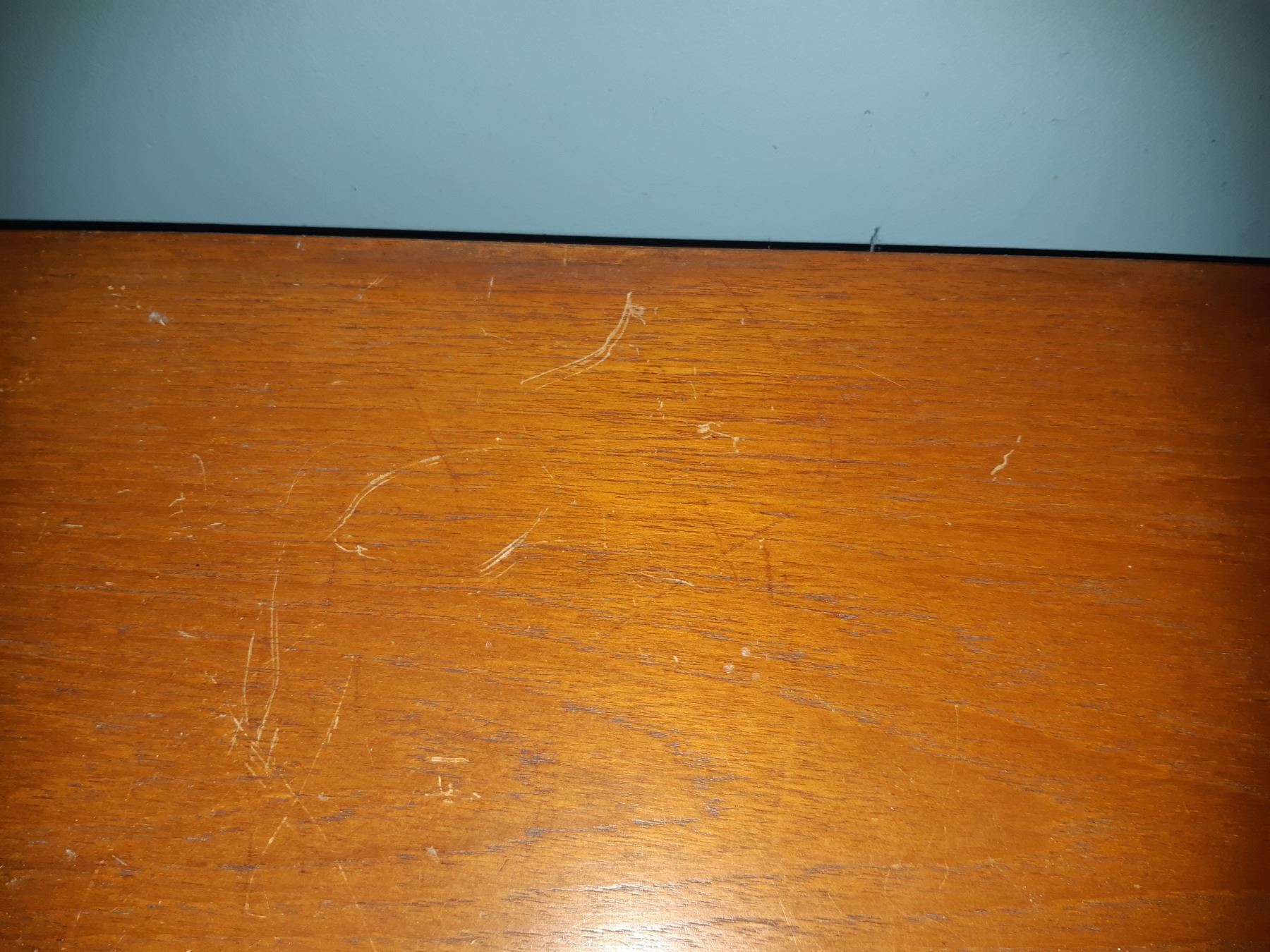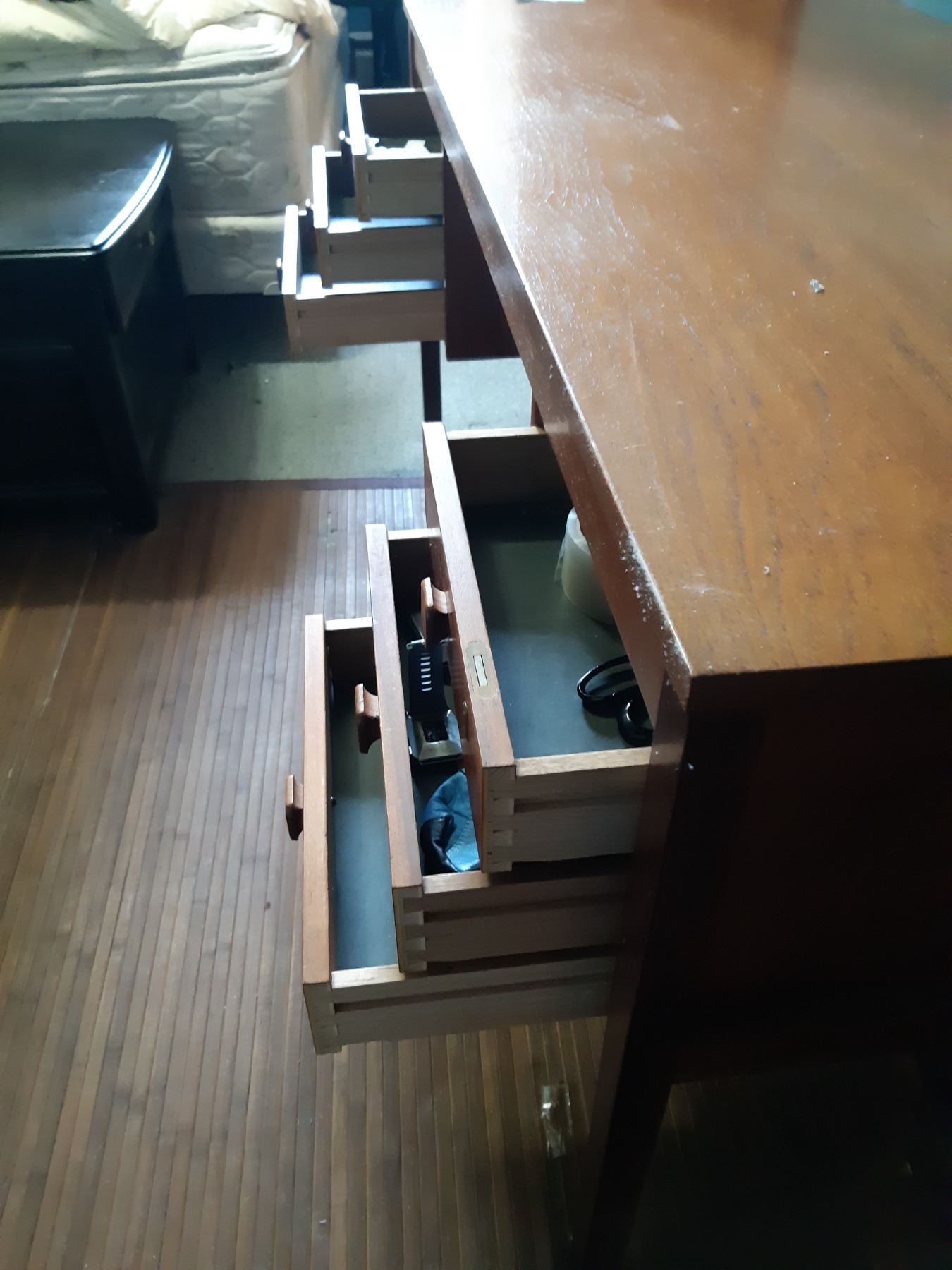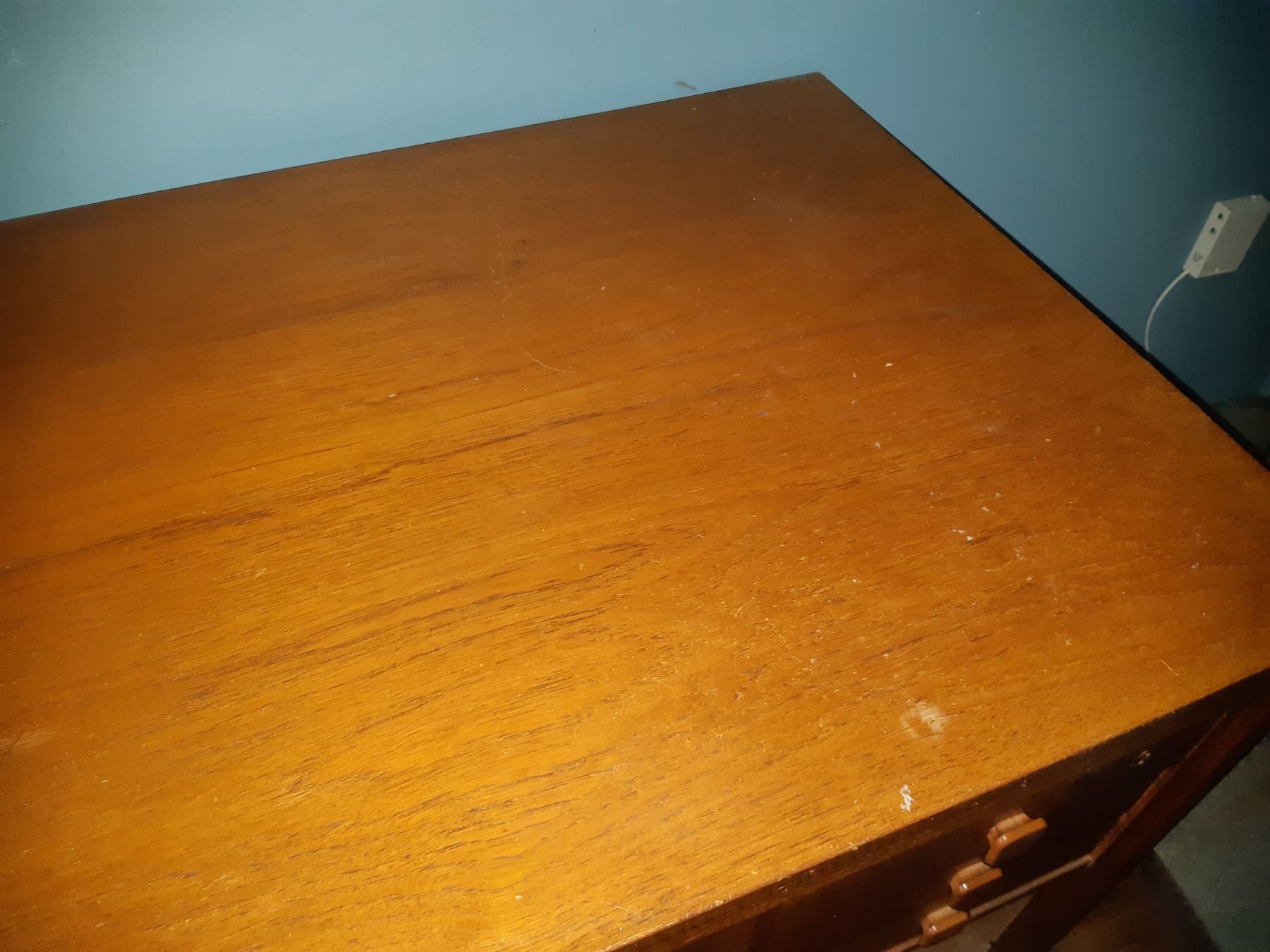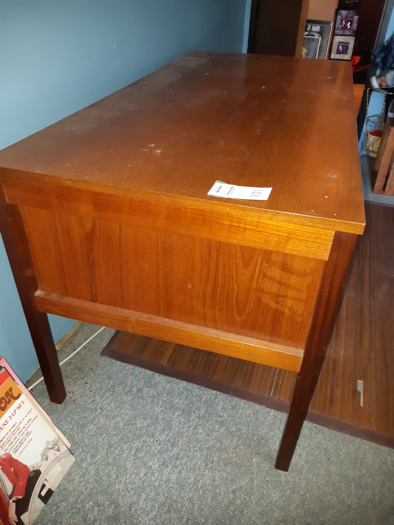 Teak desk 57x28x29 and chair 16x15x37 included. Has some marks on top. Very heavy desk, bring help to move. Pickup at 11 am.