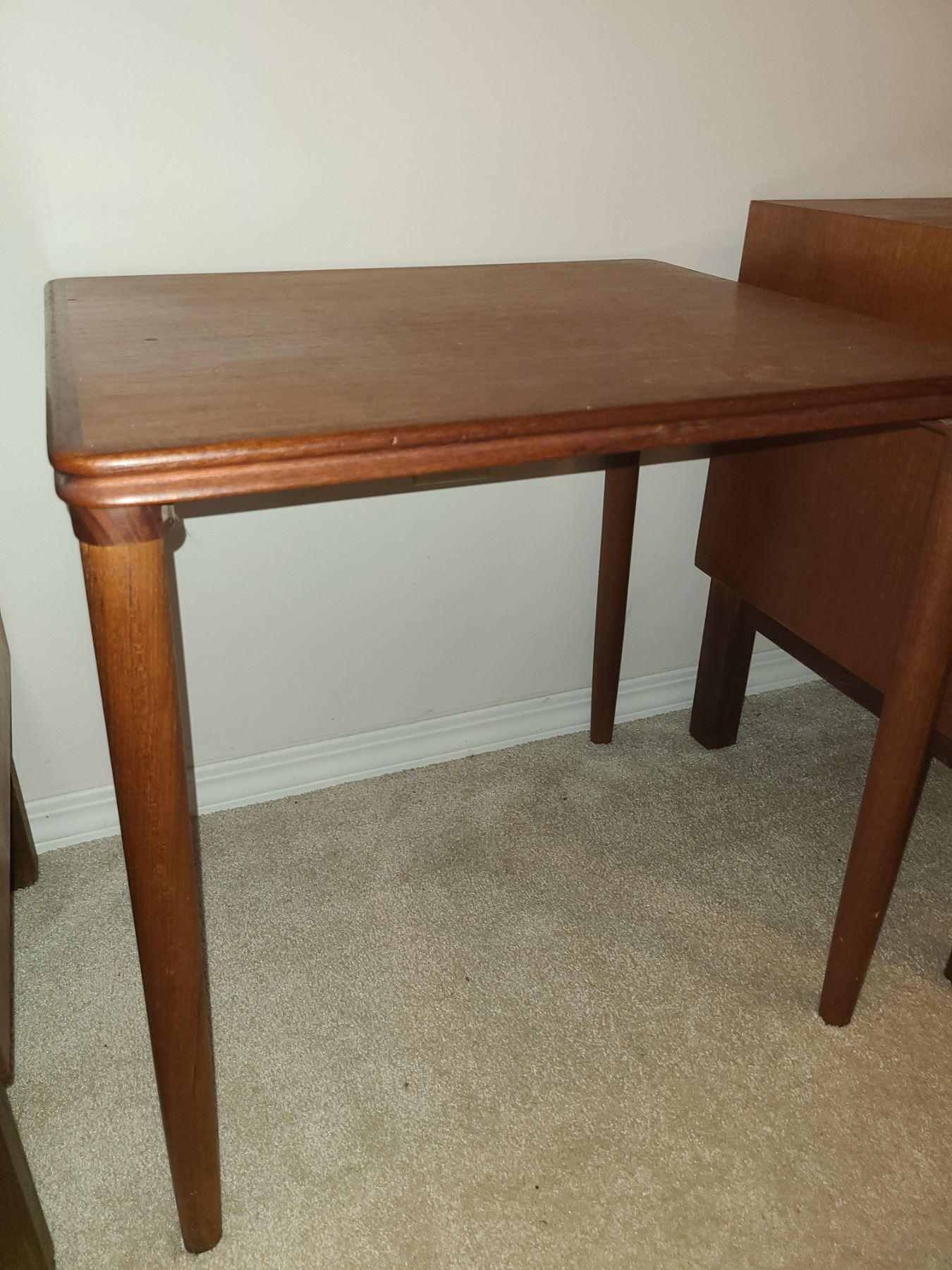 Teak end table 18x16x20. Note watermarks. Pickup at 9am.