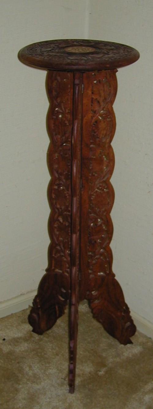 Teakwood Pierced Carved Plant Stand; 36" tall