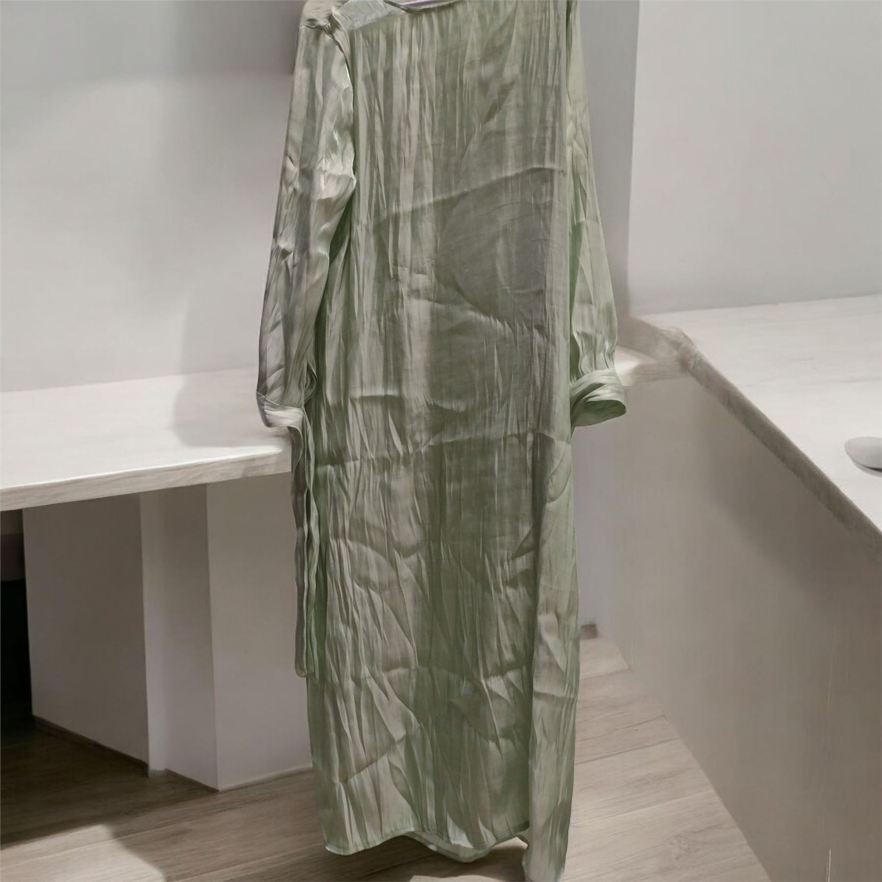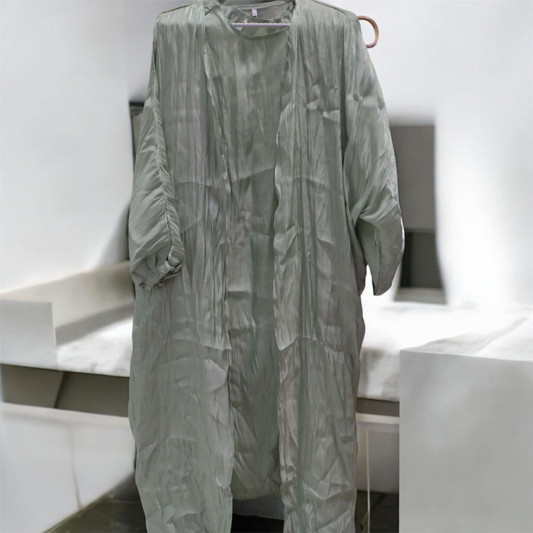 Teal Green Maxi Dress with Shrug and Belt and Crepe Size L ;4 pieces
