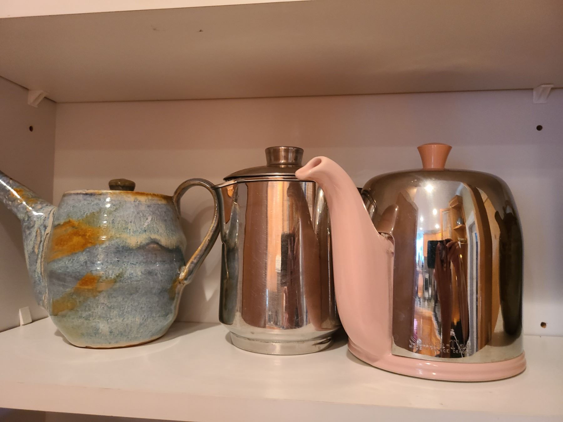 Assorted teapots, bowls, and more. Bring boxes. Pickup 9 am.