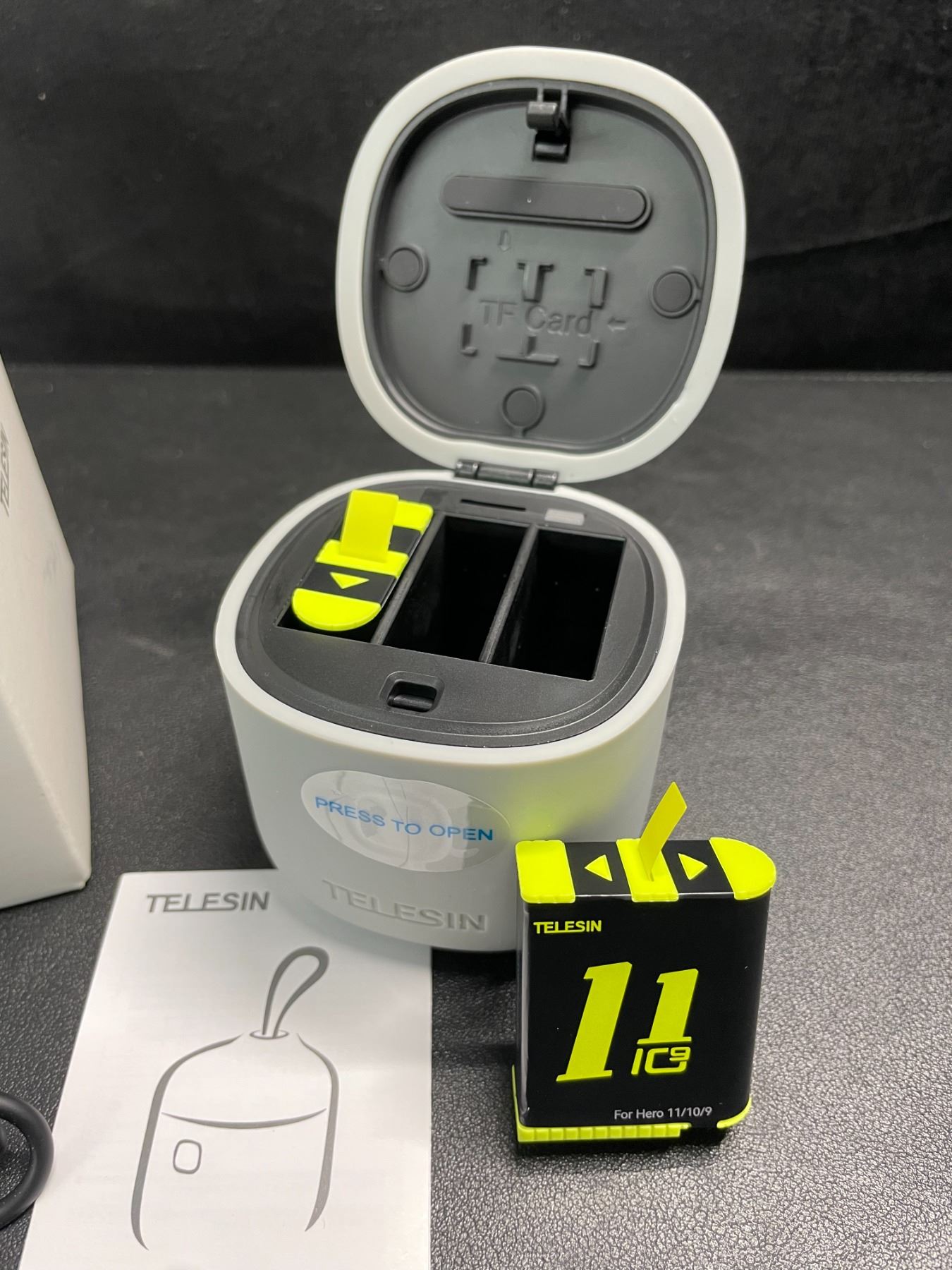 - TELESIN 2-Pack Allin Box Battery Charger for GoPro Hero 12 Hero 11 Hero 10 Hero 9 Black, IP54 Waterproof Triple Charging Box SD Card Reader Fast Charge Kit for Go Pro Charger Battery Accessories