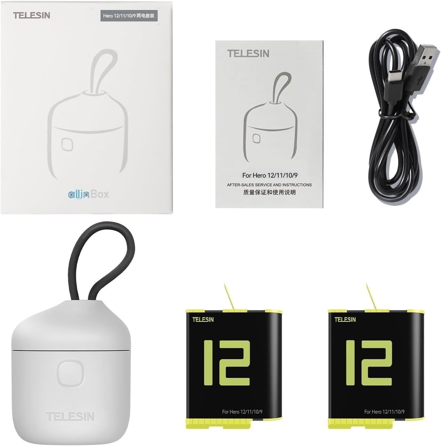 - TELESIN 2-Pack Allin Box Battery Charger for GoPro Hero 12 Hero 11 Hero 10 Hero 9 Black, IP54 Waterproof Triple Charging Box SD Card Reader Fast Charge Kit for Go Pro Charger Battery Accessories