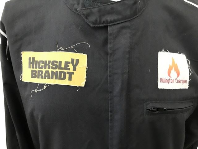 The Art of Racing in the Rain -Navy racing coveralls with unfinished Hicklsey Brant and Killington energy patches and Sparco embroidered on the shoulders. Size L.
