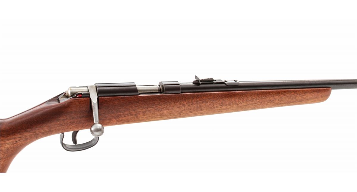 ''The Colteer'' I-22 Single Shot Rifle, NVSN, .22 LR cal., 24'' barrel, blue finish, walnut stock, with Colt marked black plastic buttplate. Condition is fine. Metal surfaces show approx. 92% original blue. Stock with minor impressions. Good action and bore. Est.: $200-$400. (C&R)