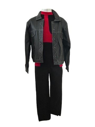 The Extreme Adventures of Super Dave (2000) - DJ's (Steve Van Wormer) screen worn, black leather jacket from LA ROXX with white trim and a pair of CK Calvin Klein black jeans (size 30). Inside both tags reads DJ stunt.