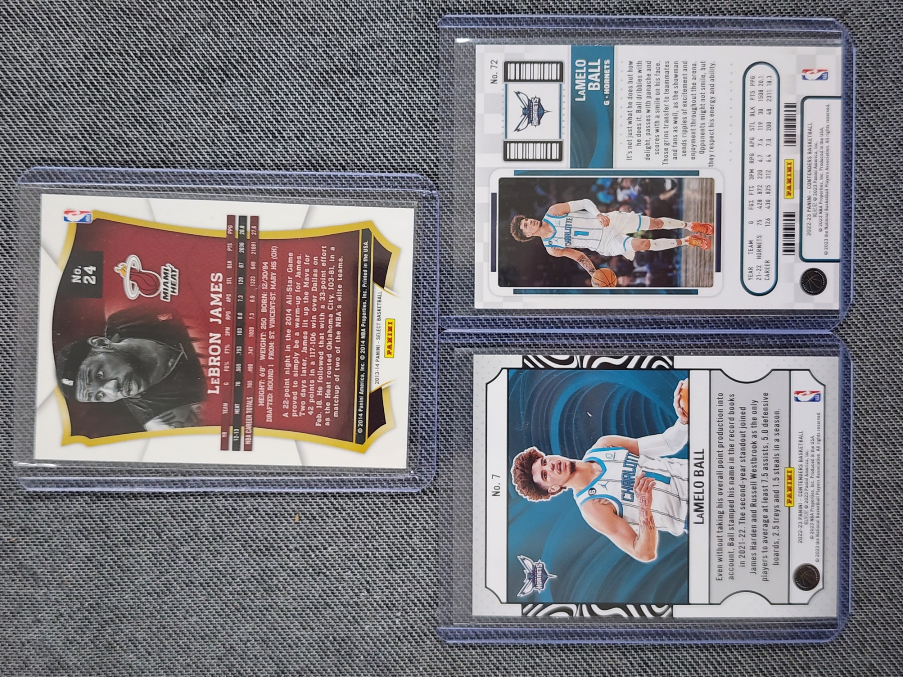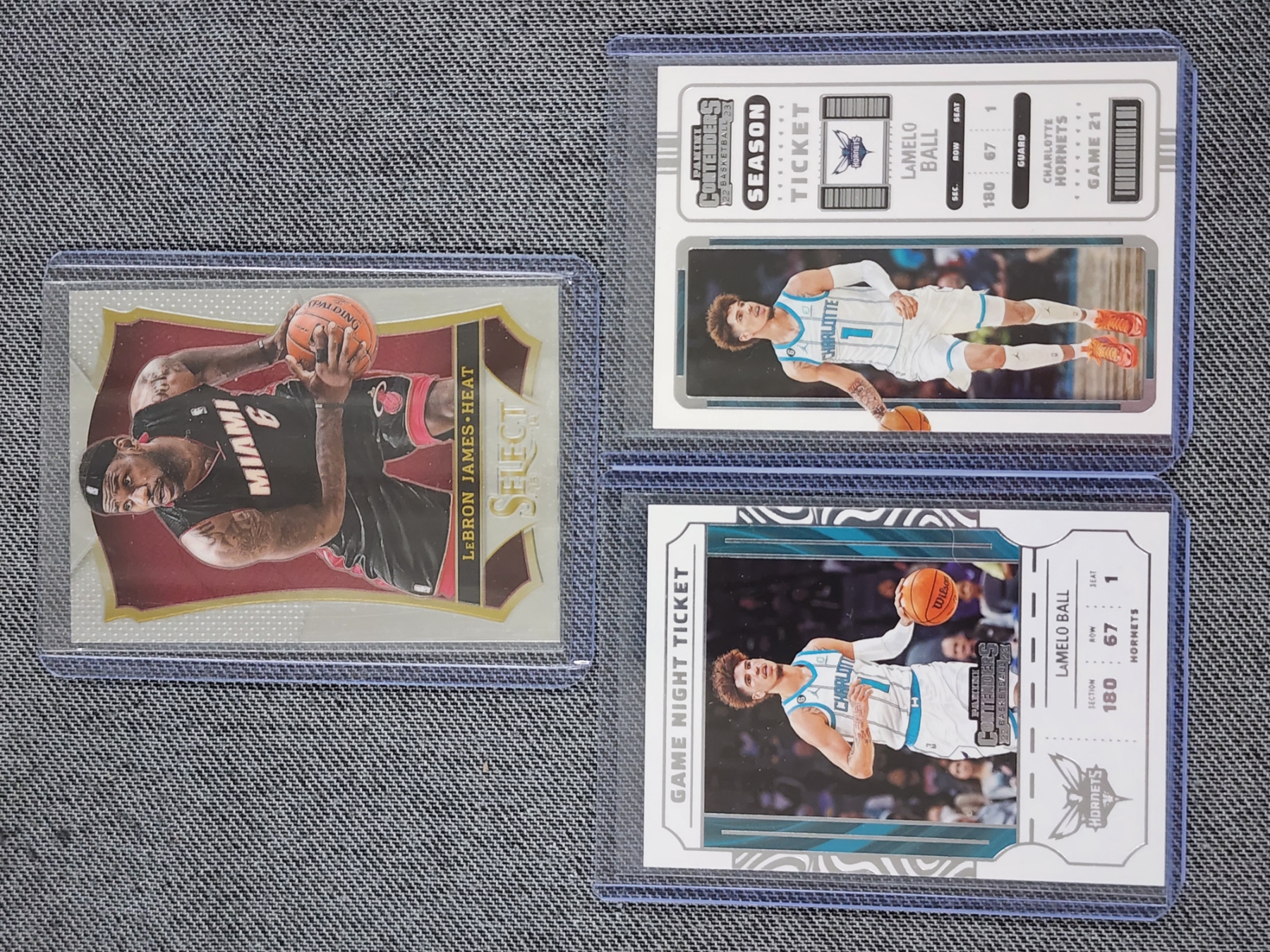 Three Assorted Basketball Trading Cards Including Two Lamelo Ball & A LeBron James Card - Near Mint