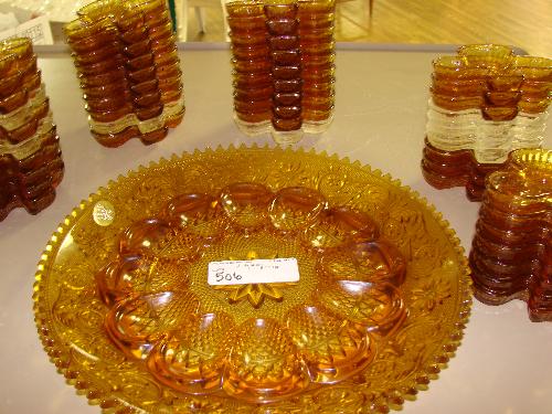 Tiara Amber deviled egg tray w/55 Club Snack dishes