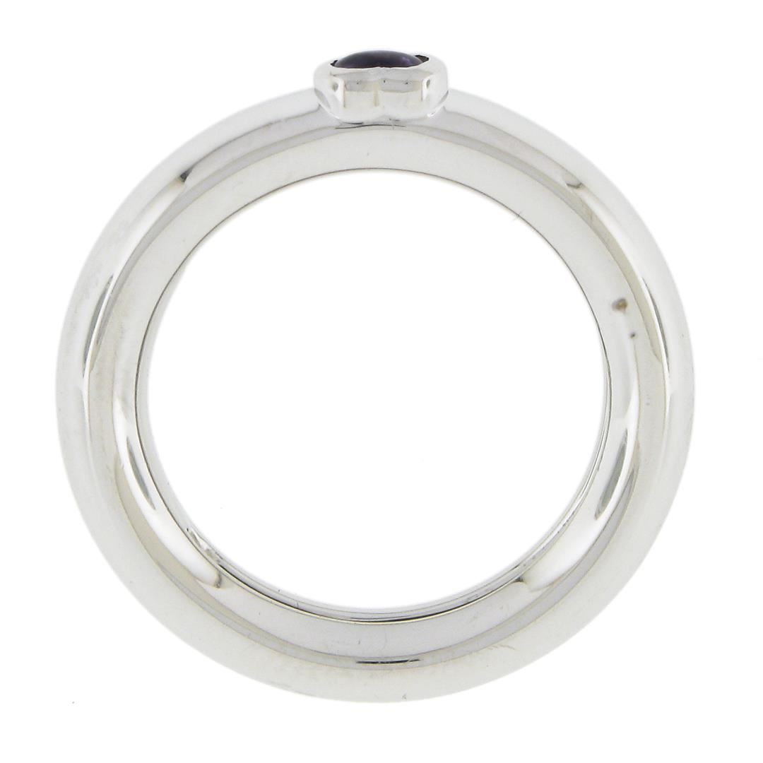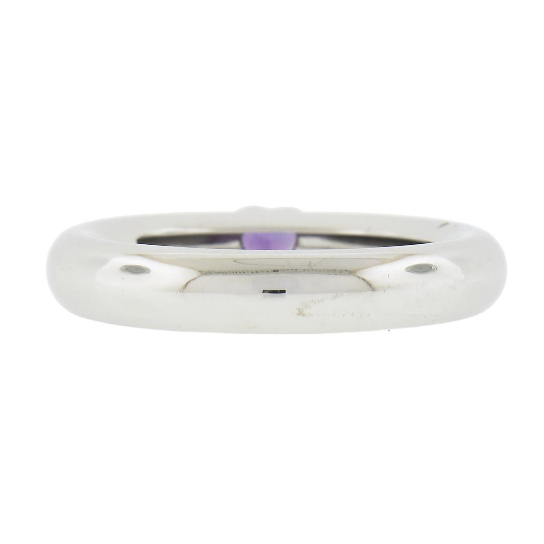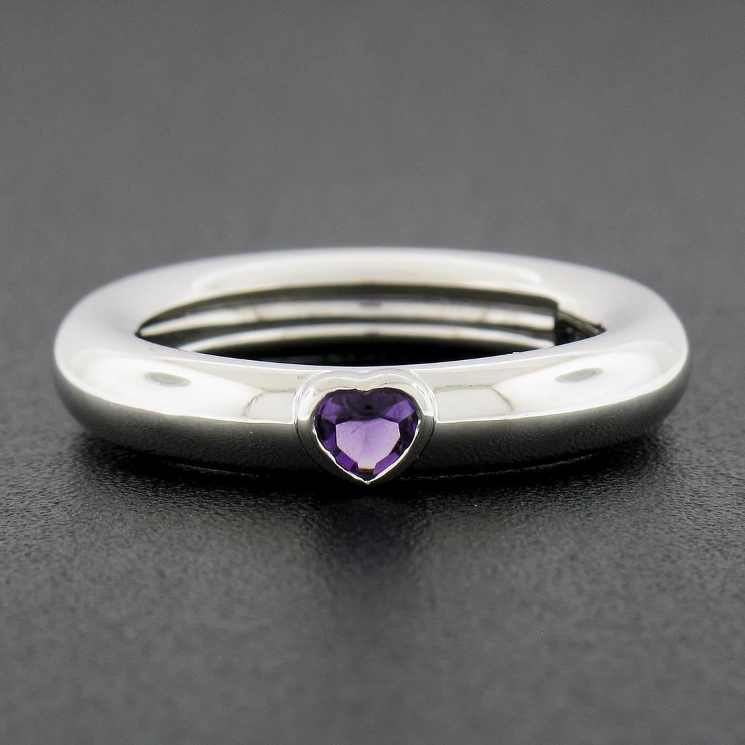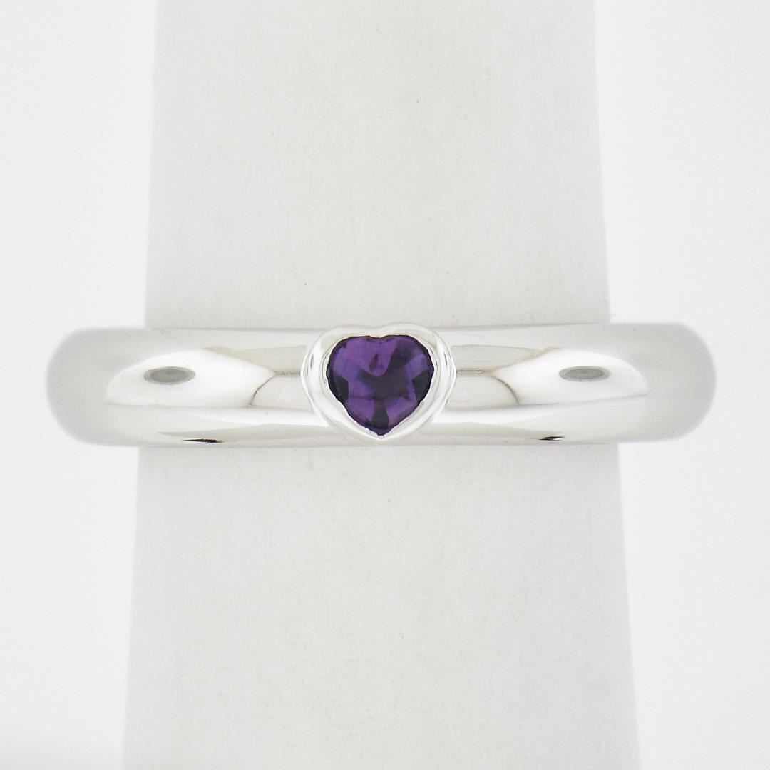 A solid 18k white gold solitaire ring by Tiffany & Co. with 1 heart cut natural amethyst. The ring is size 6.5, weighs a total of 5.07 grams, and measures 4mm wide.