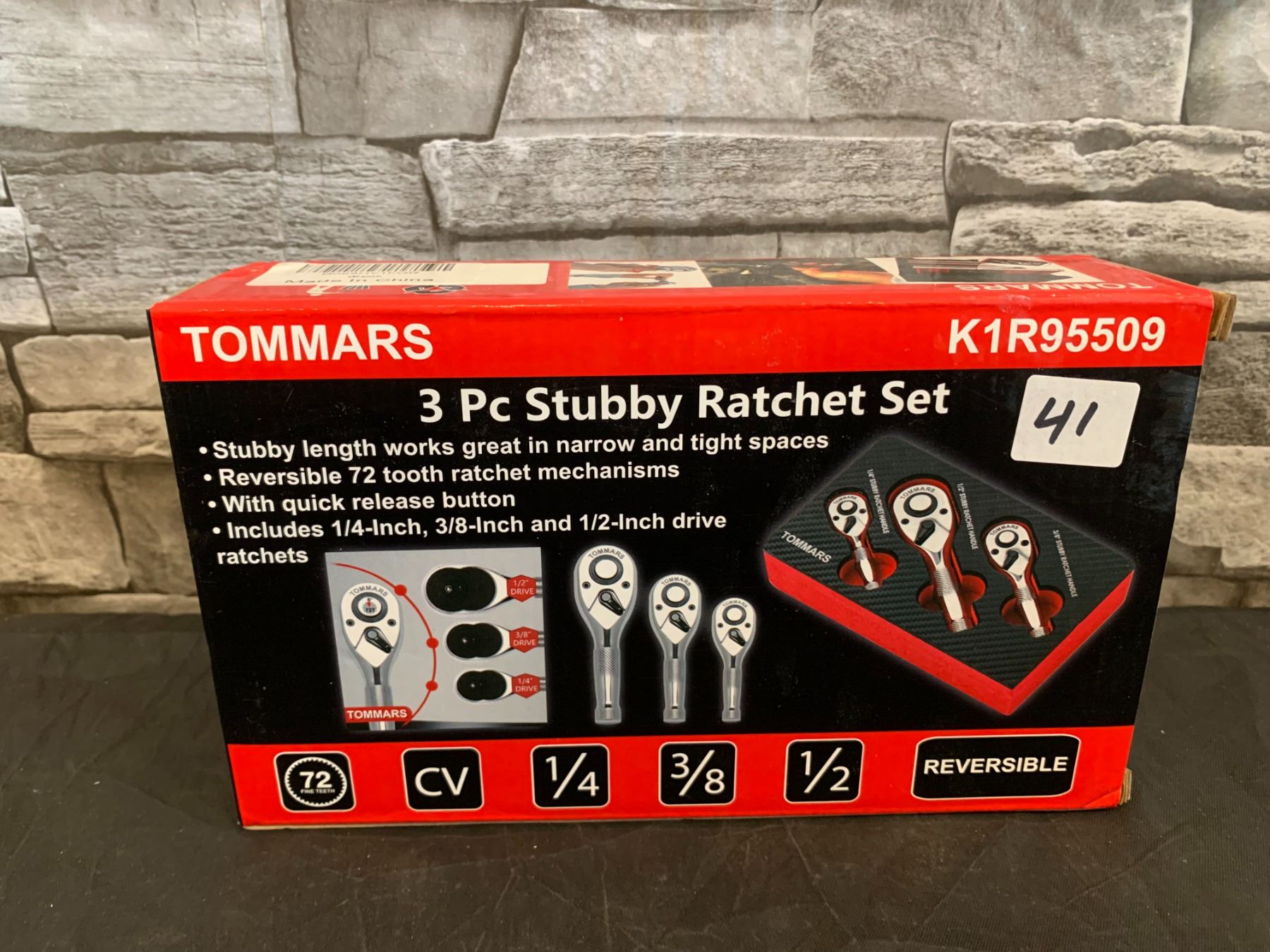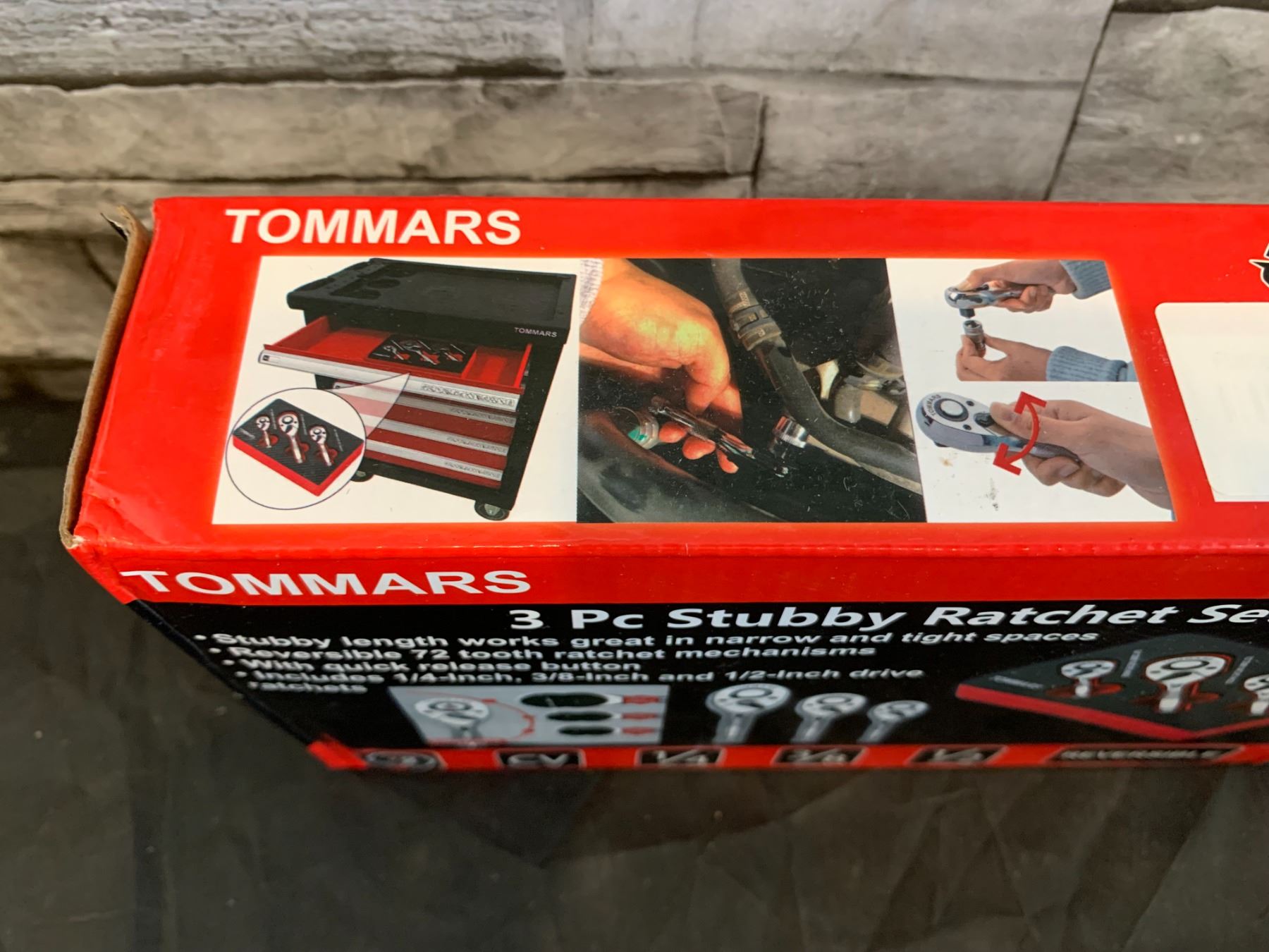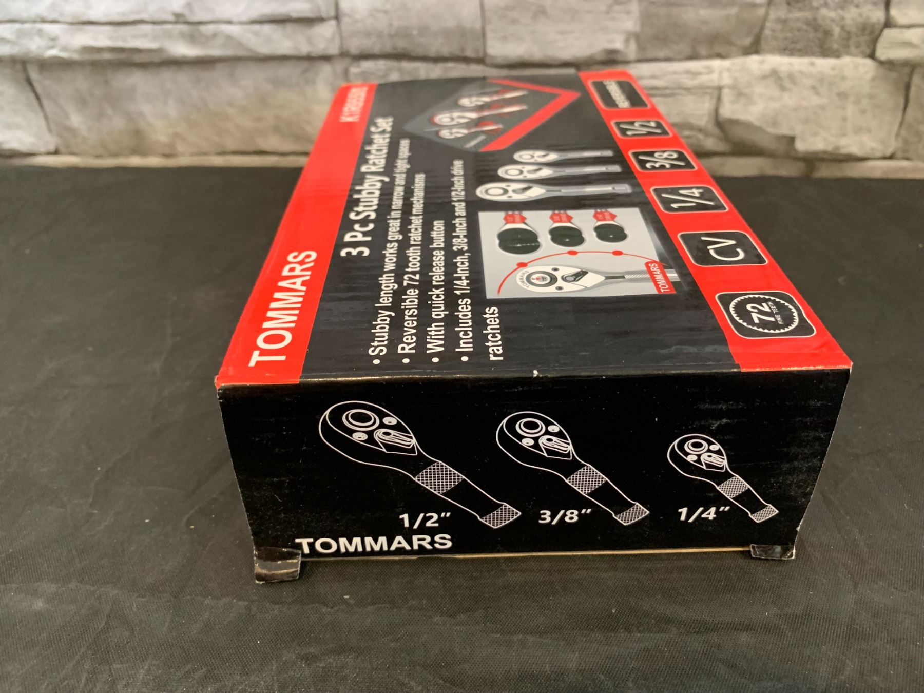 Tommars 3 pc Stubby Ratchet Set 1/4 3/8 1/2 Inch Reversible