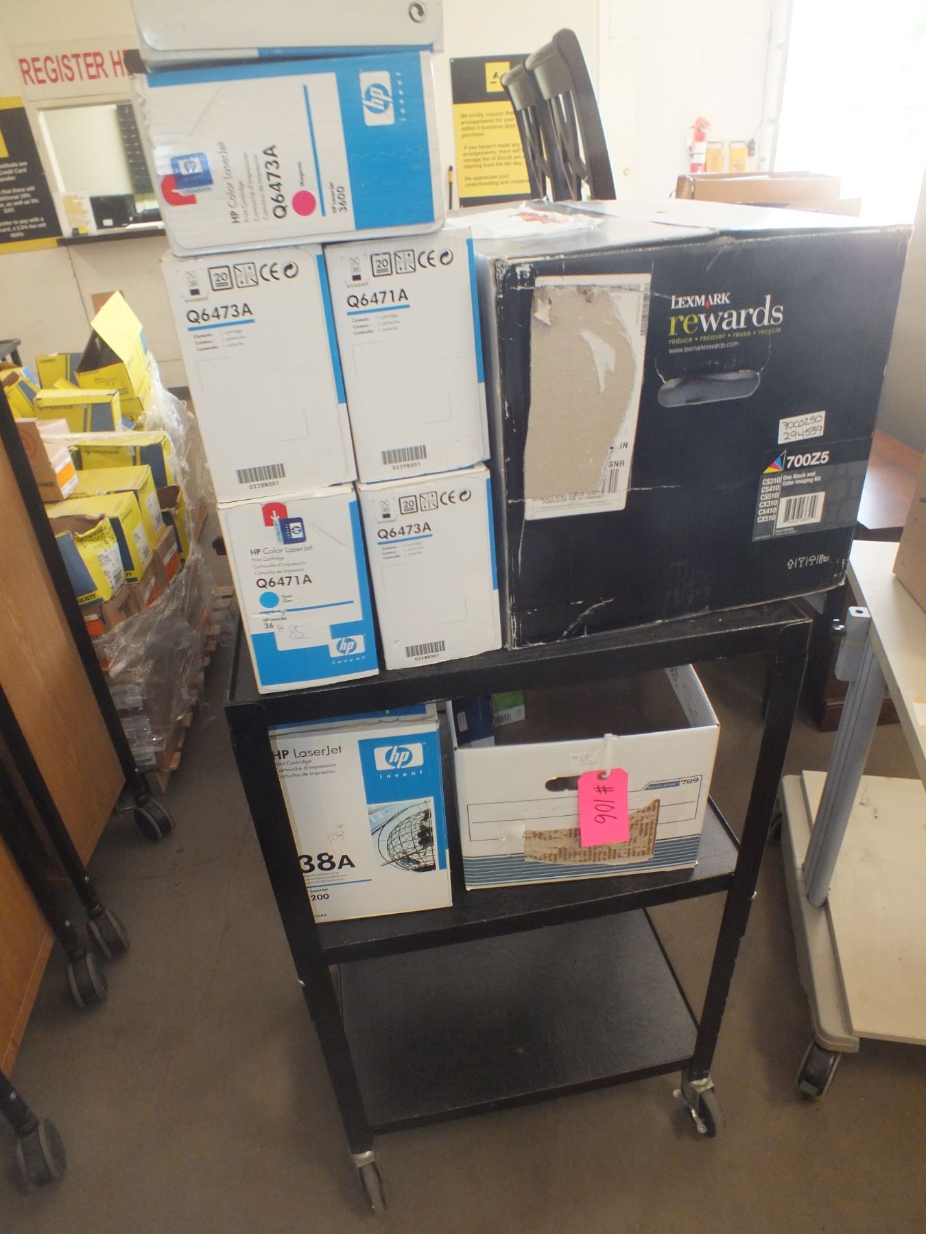 Toner Lot w/ Black Cart On Wheels...used