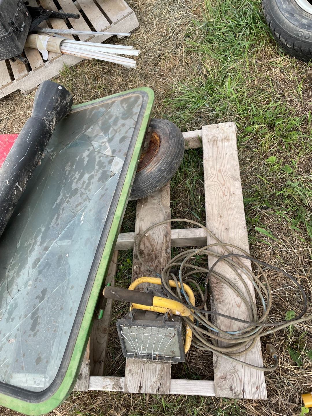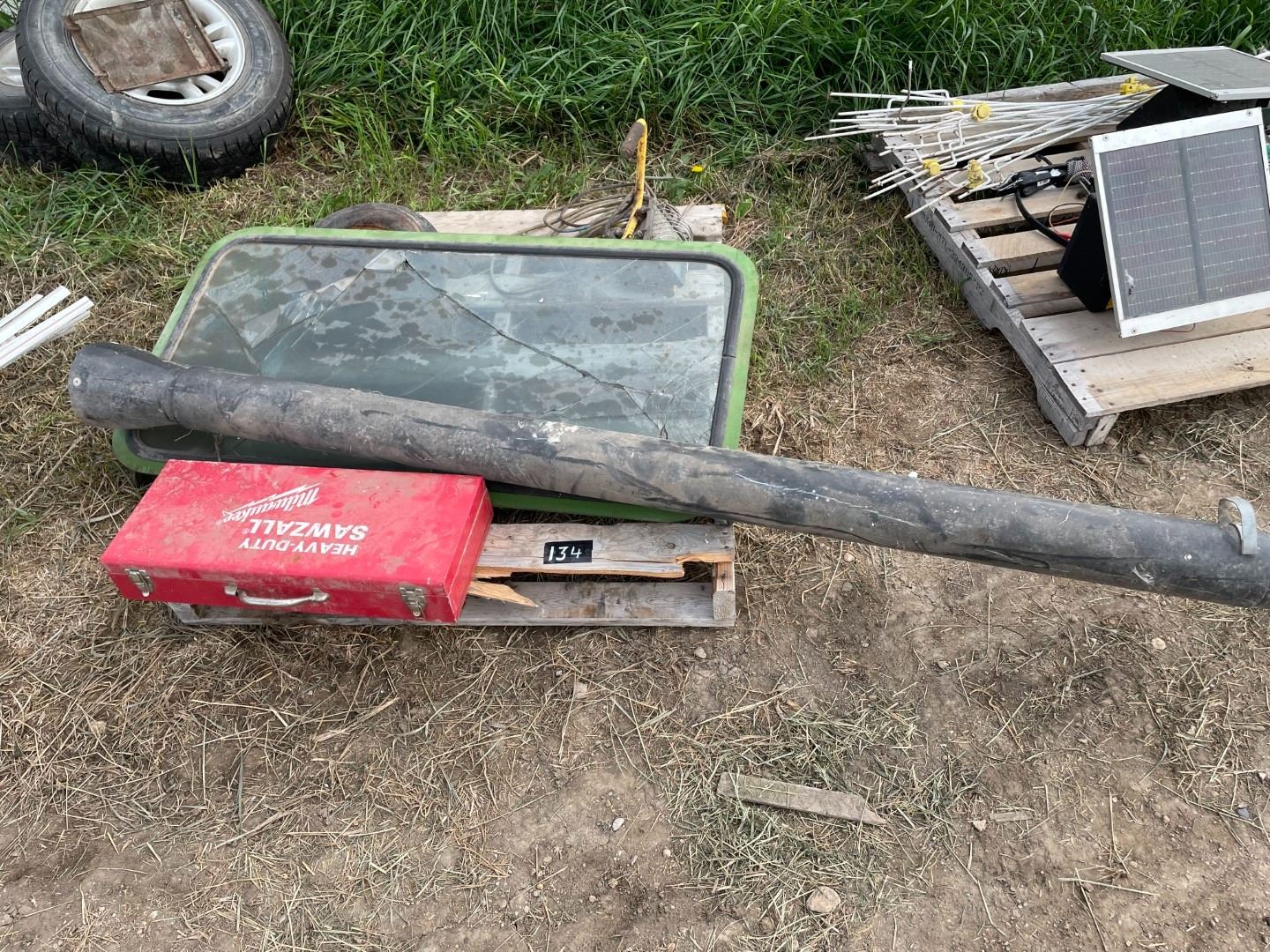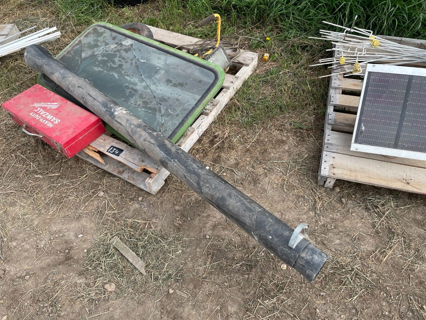 Back window from JD 4020, spout for drill fill, Empty Millwalkee tool box