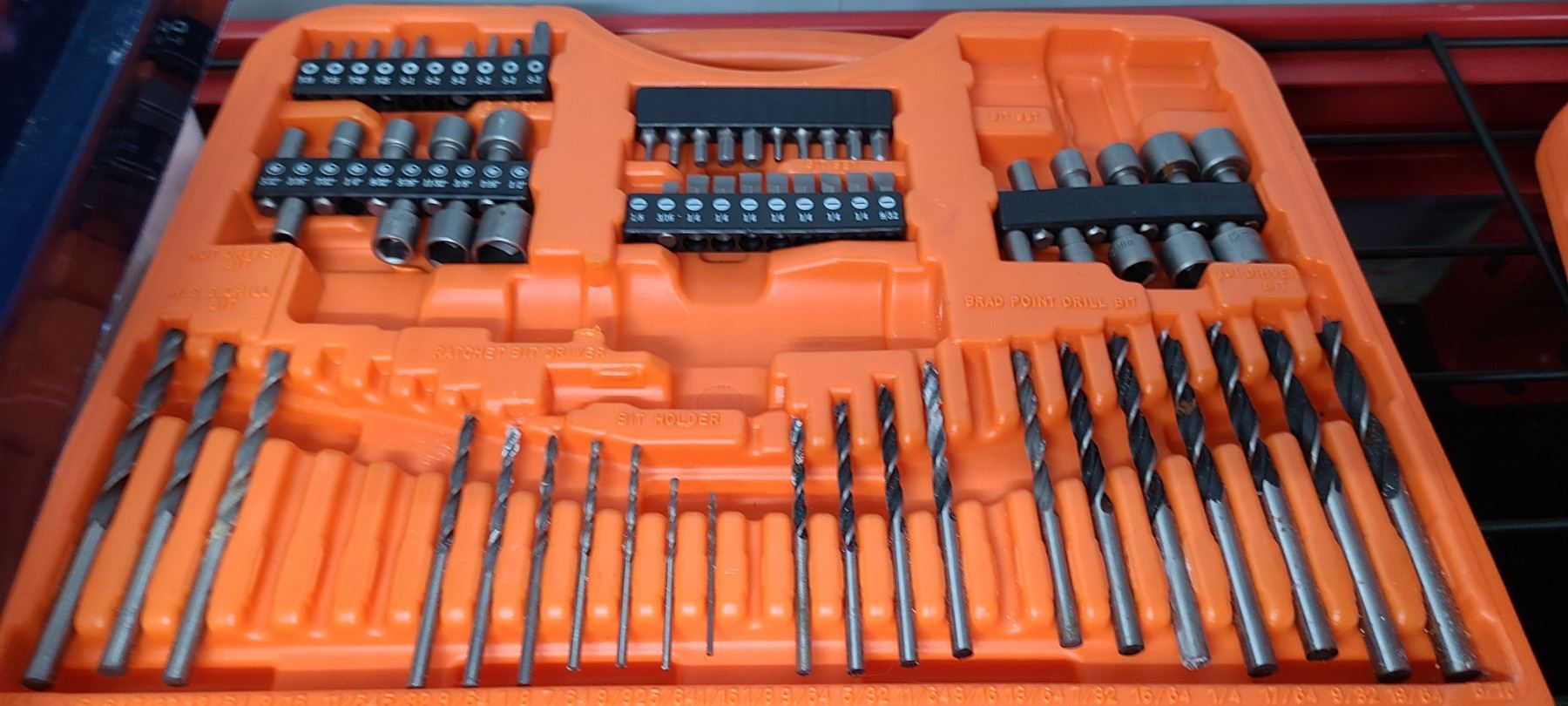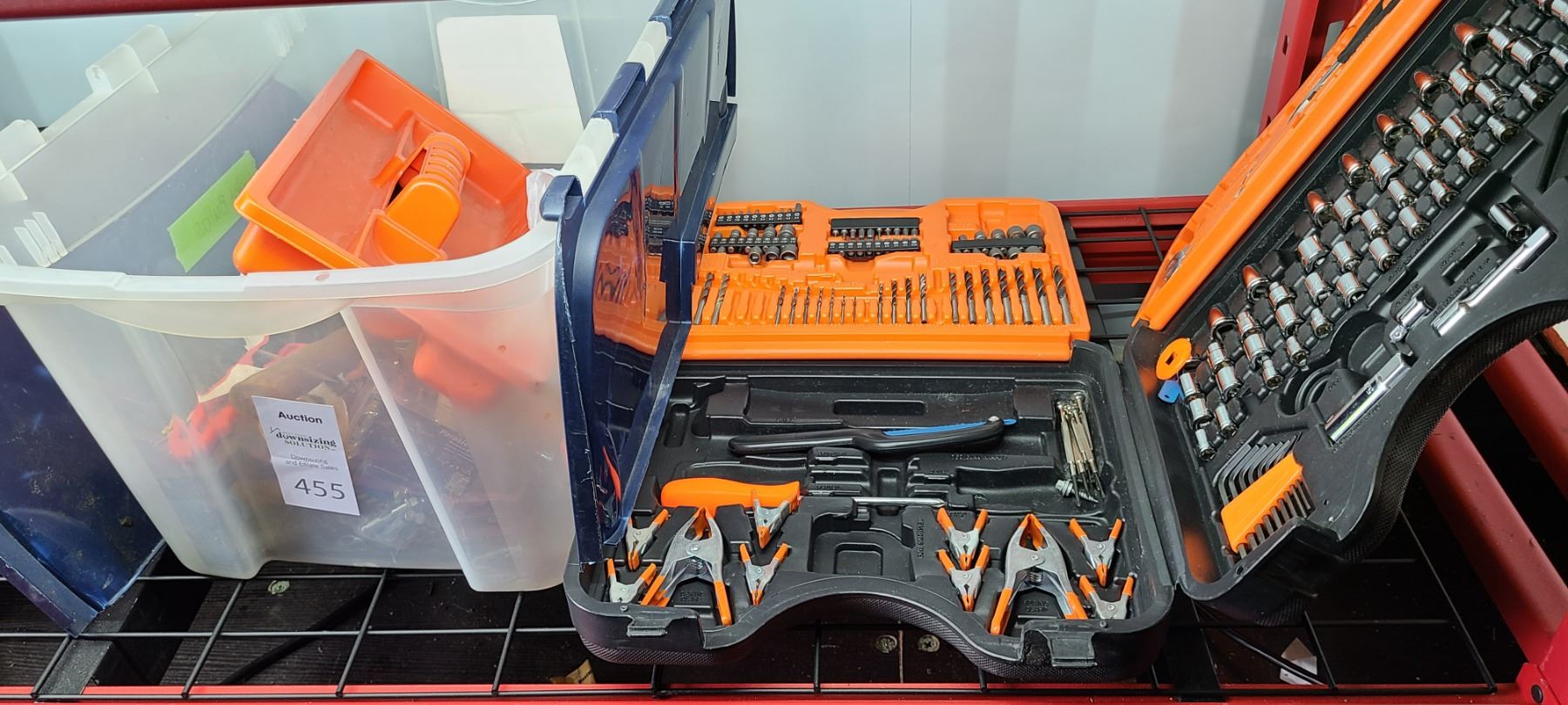 Case containing drill bits & sockets. Container of tools. Pickup at 9 am