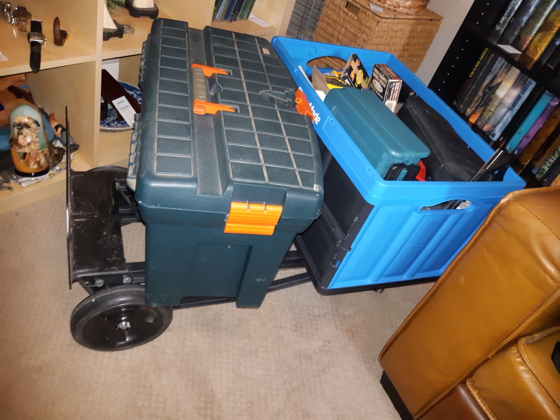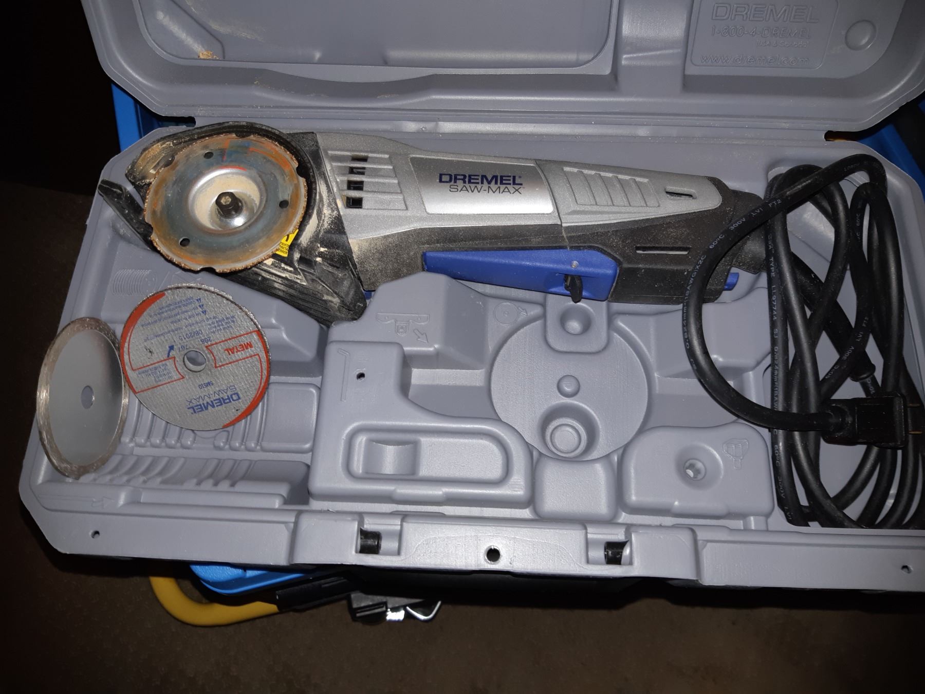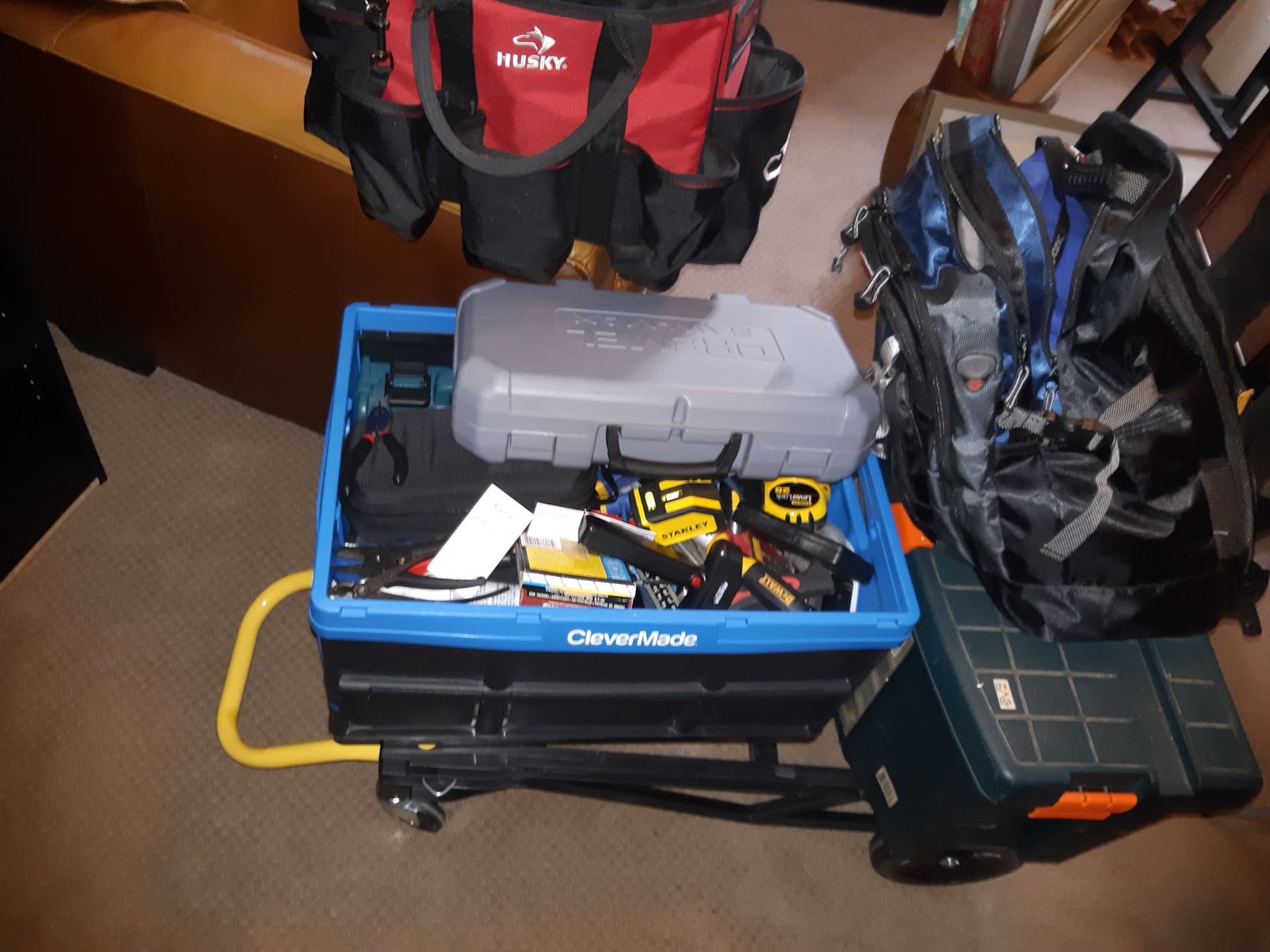 Large selection of tools, Dremel Saw Max untested, Makita Drill, untested dolly folds down into cart 42 long, pickup 9am