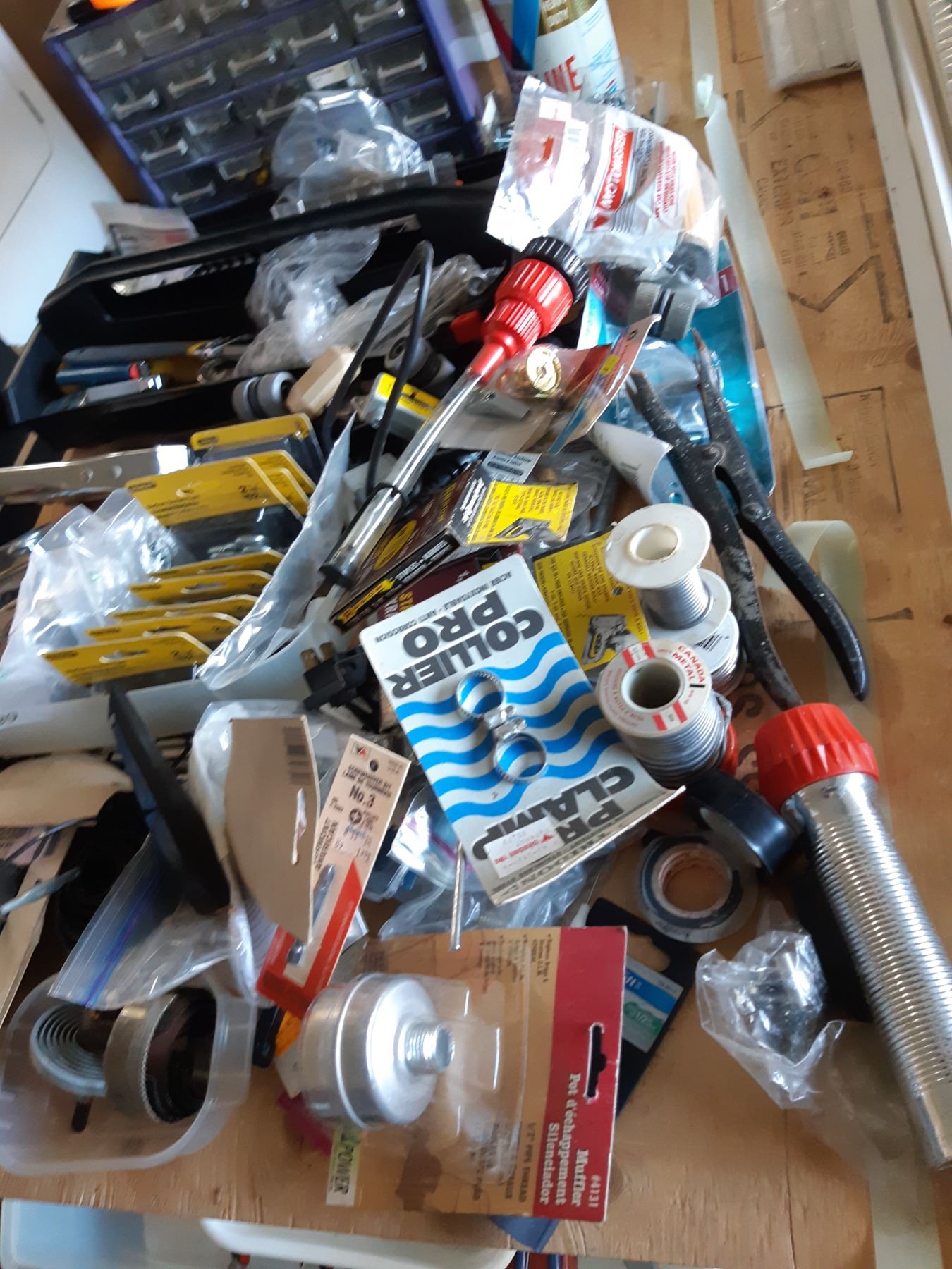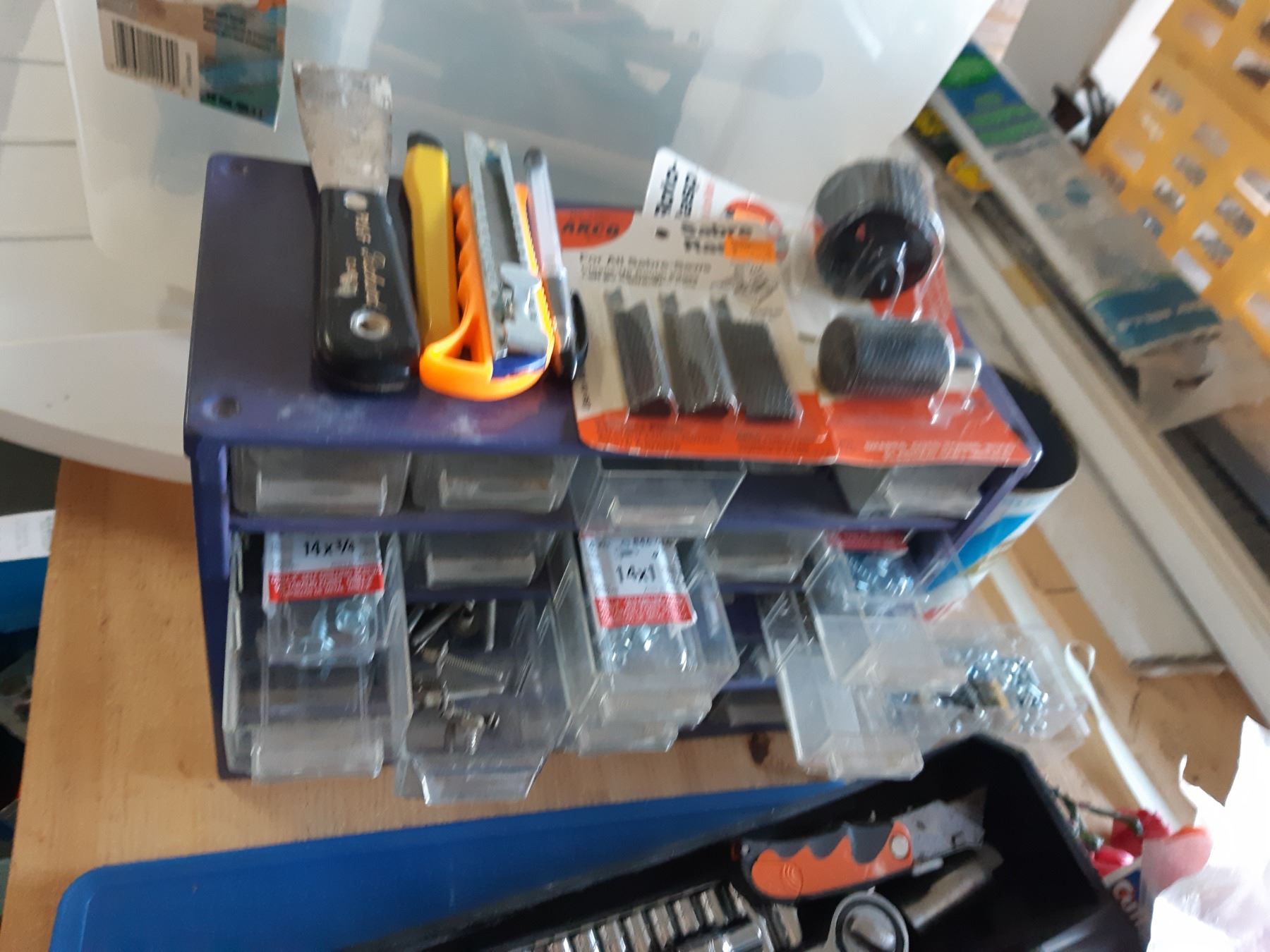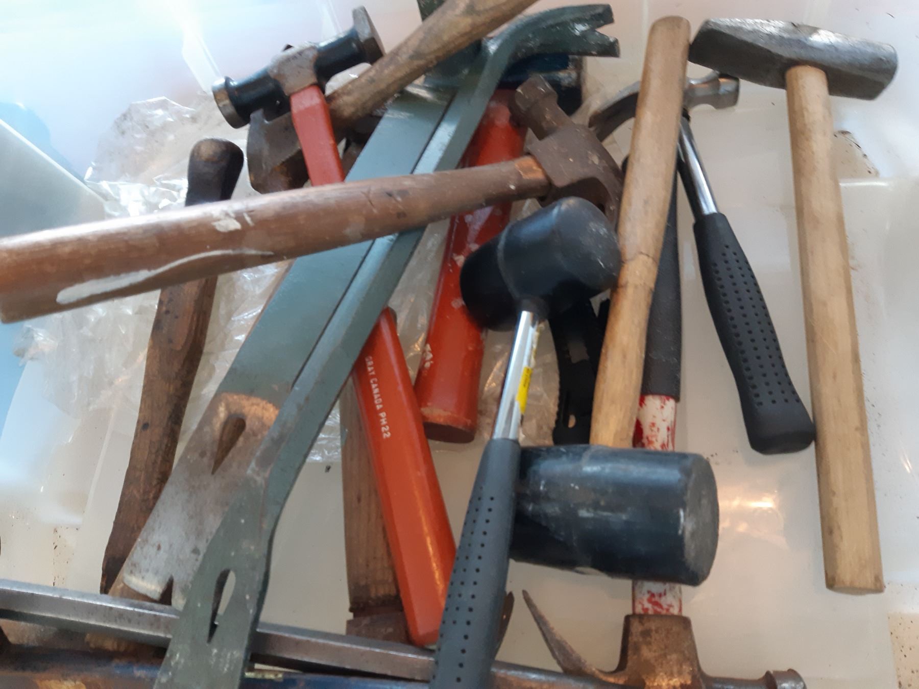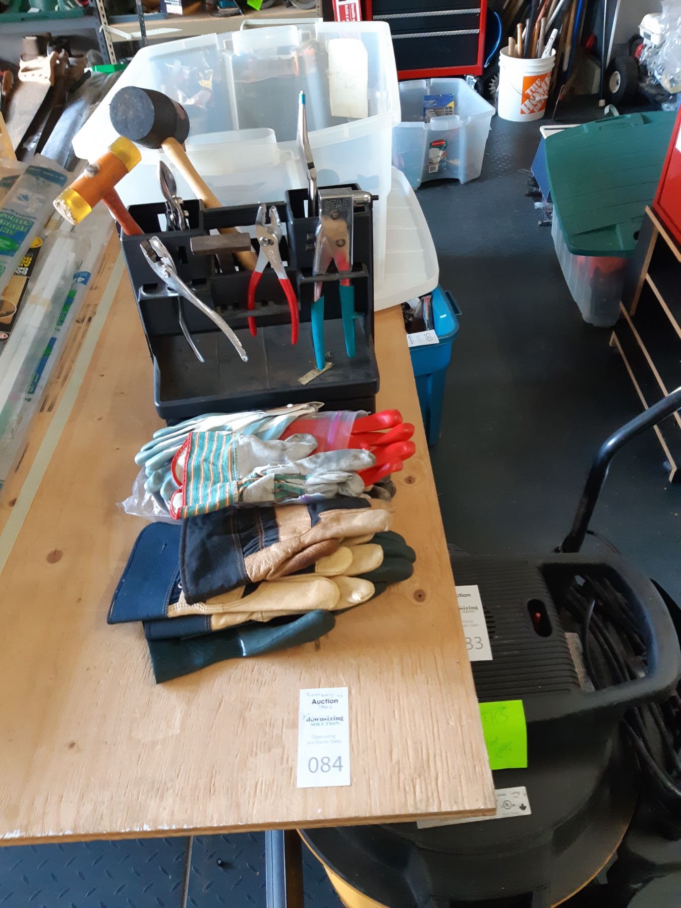 Work gloves, pop rivetor, wrenches, hardware. Pickup at 10am