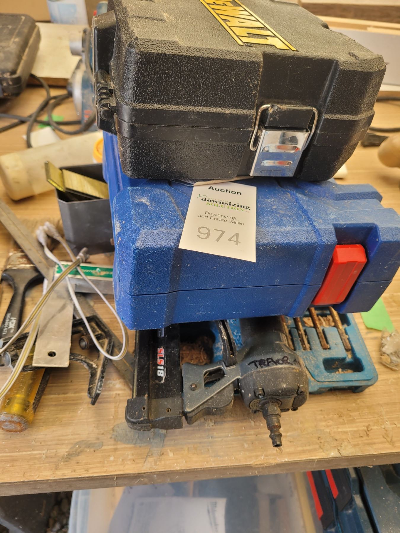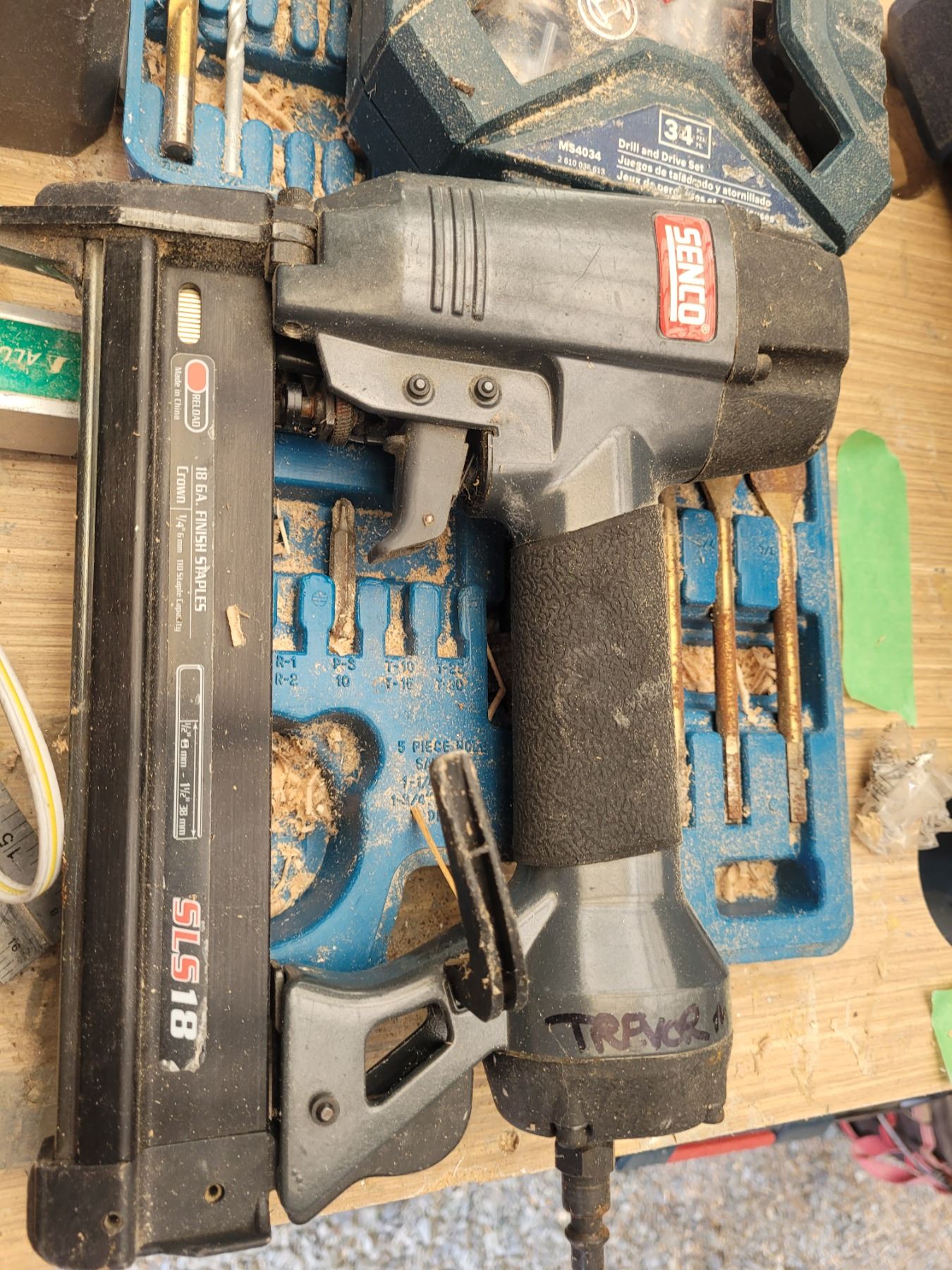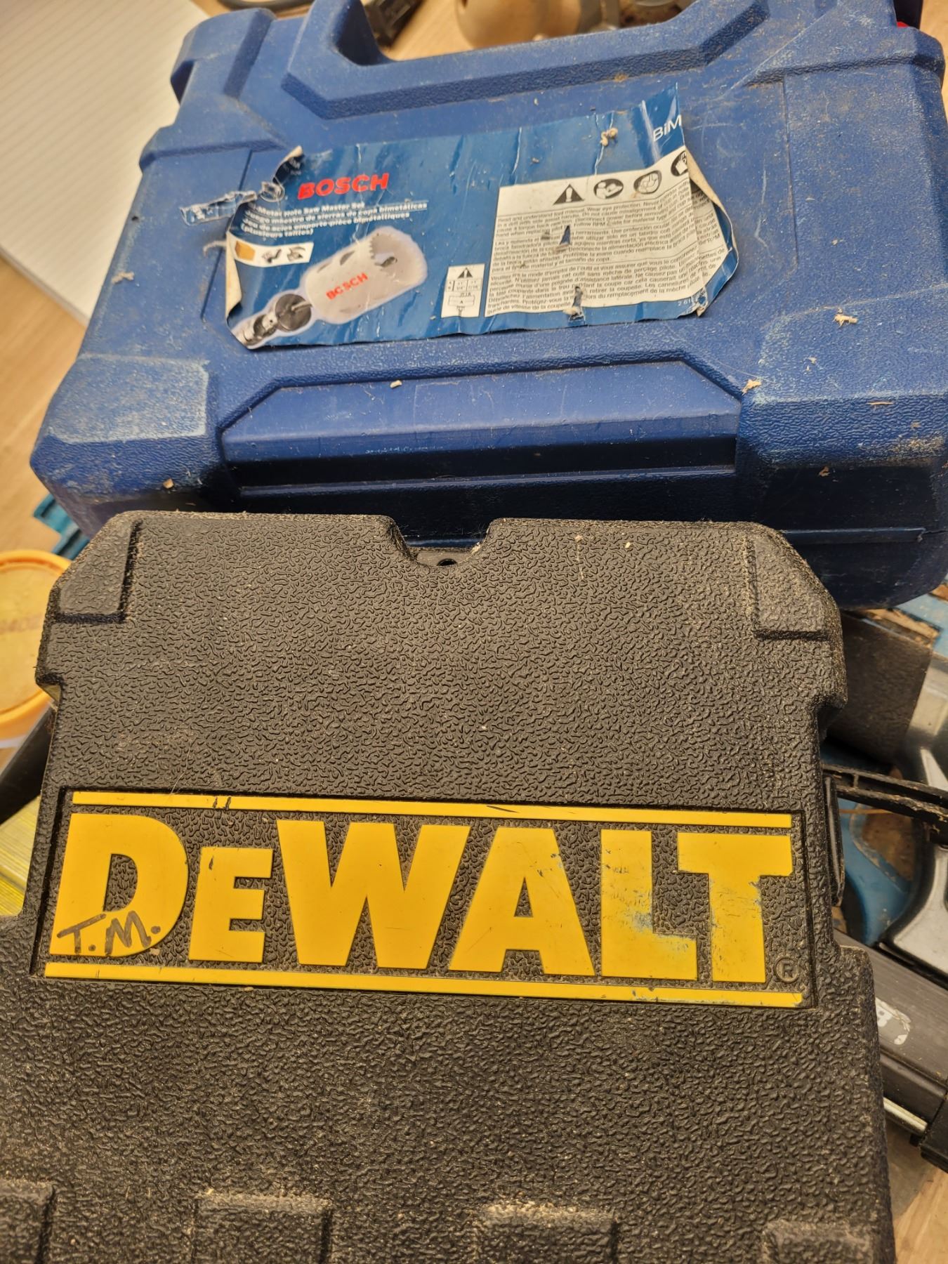 Empty tool cases and Senco stapler, Bosch drill and drive set, Allied bits. Pickup at 10 am