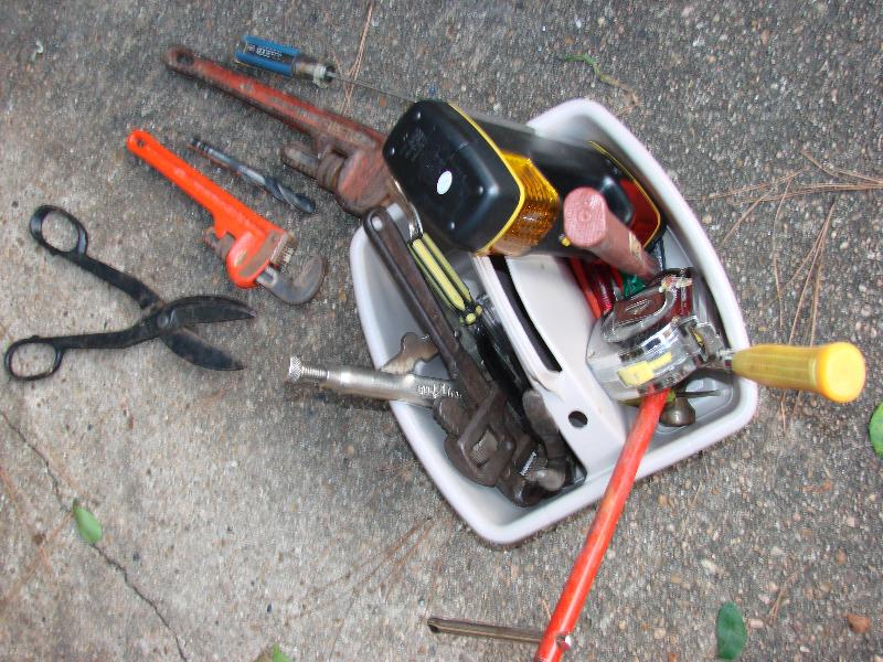 Tools: pipe wrenches, screwdrivers, tape measure, variety!