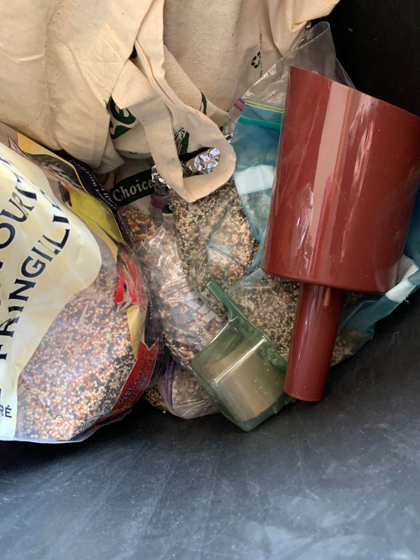 Top Dressing Soil, Black Container Bird Seeds, Mulch, White Rocks