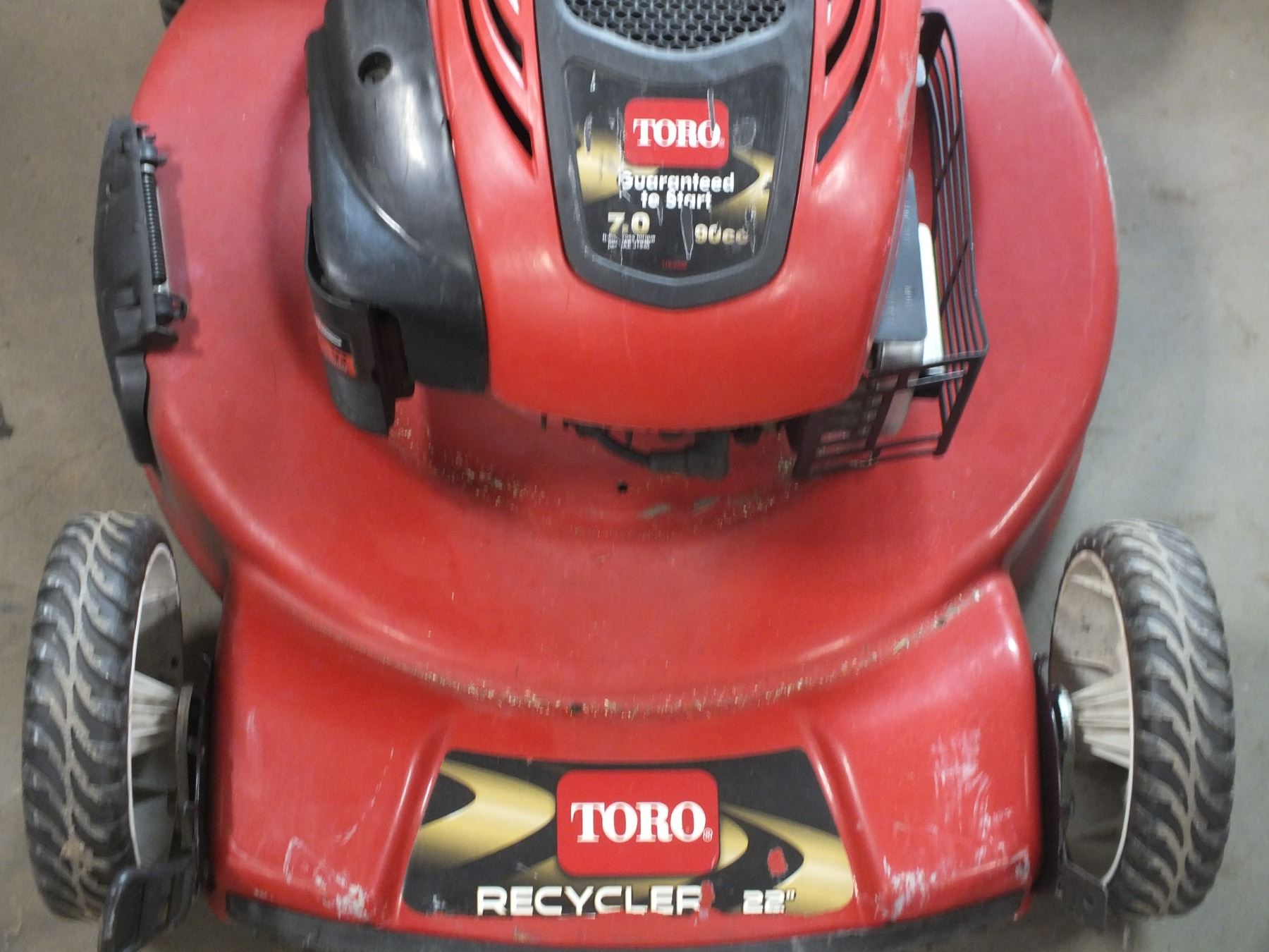 Toro Self Propelled Gas Powered Lawn Mower w/ Bag, runs good but drive wheel needs attention...used