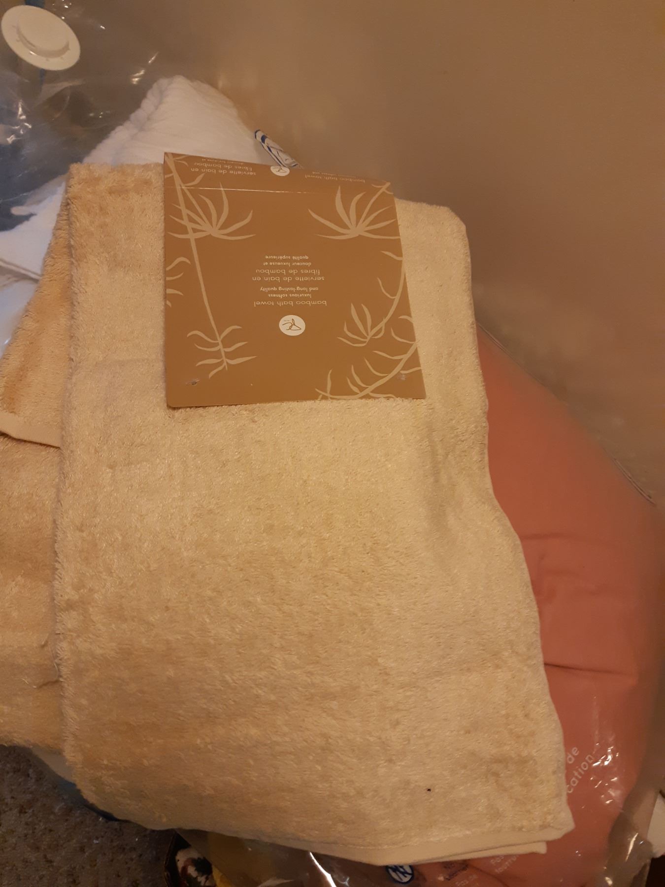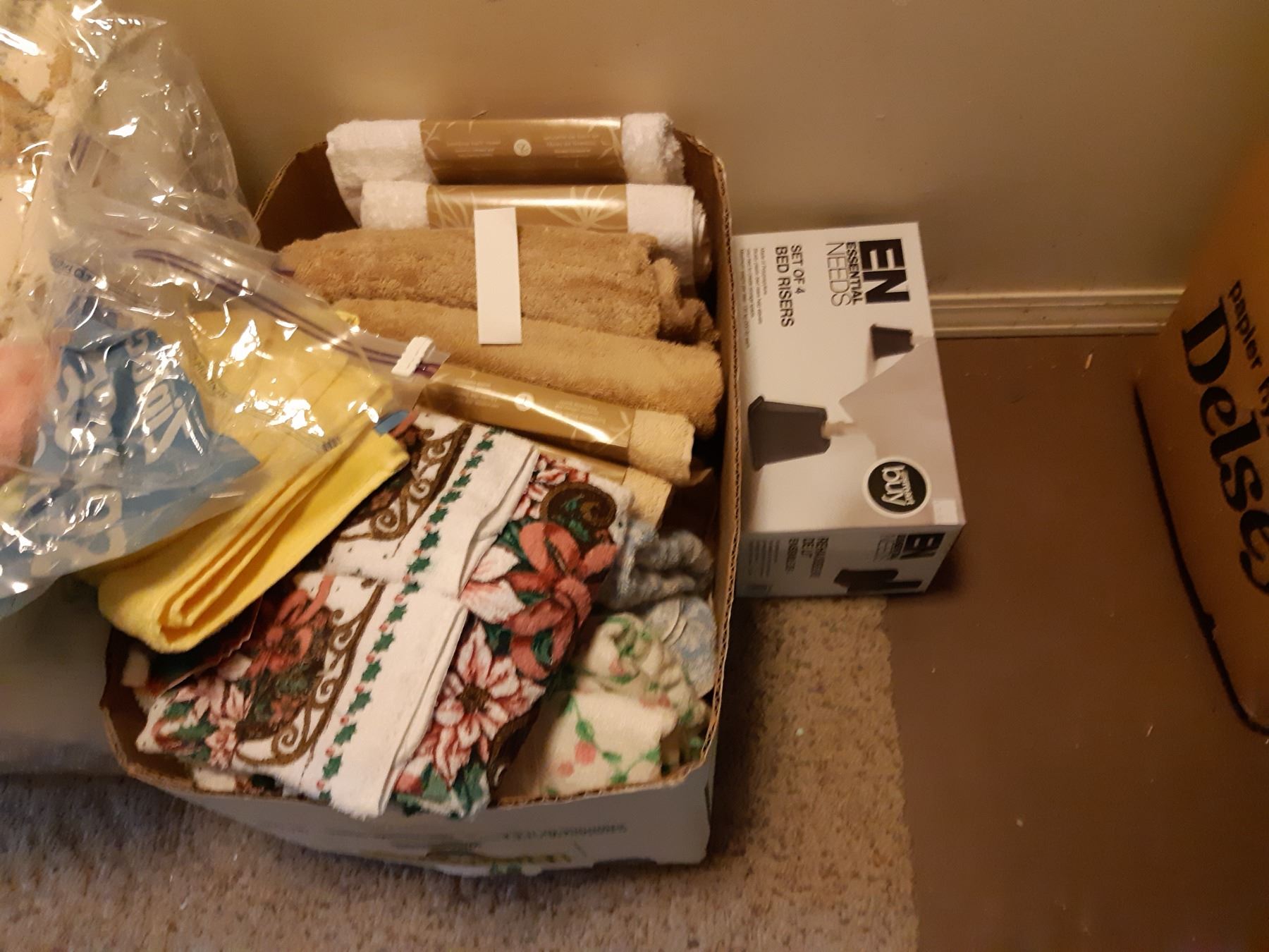 Assortment of bath and seasonal towels. Pick up between 9 and 10