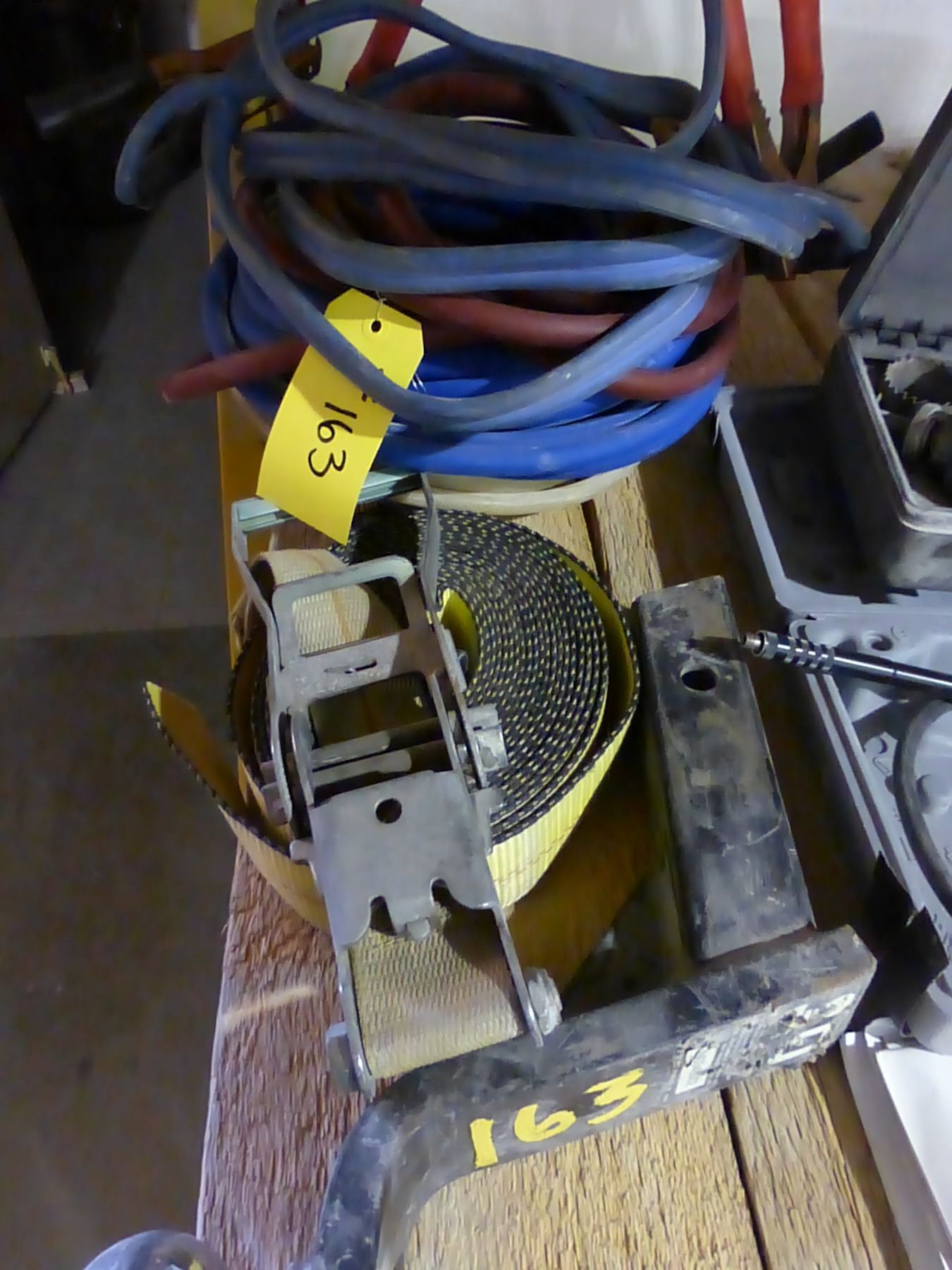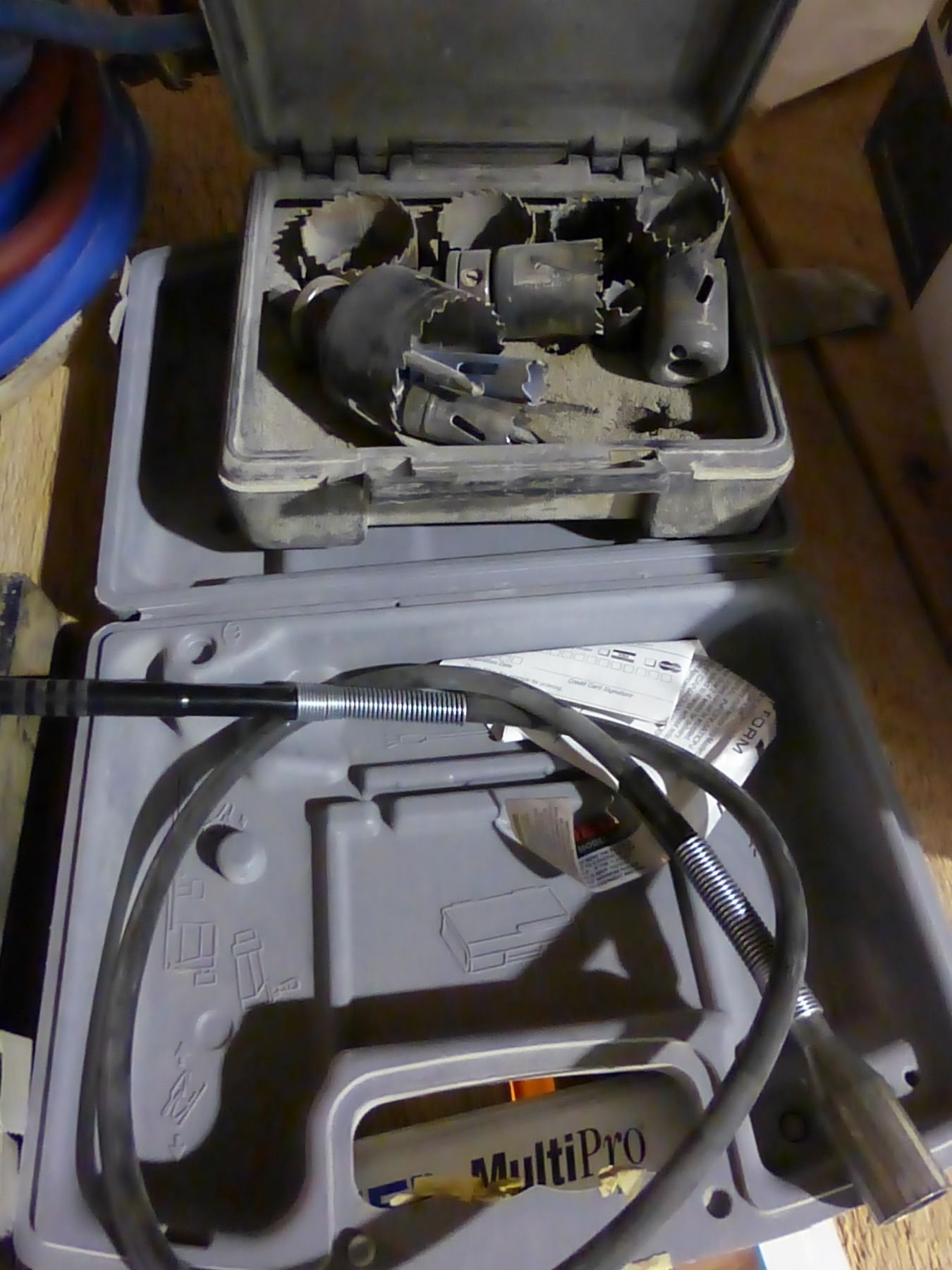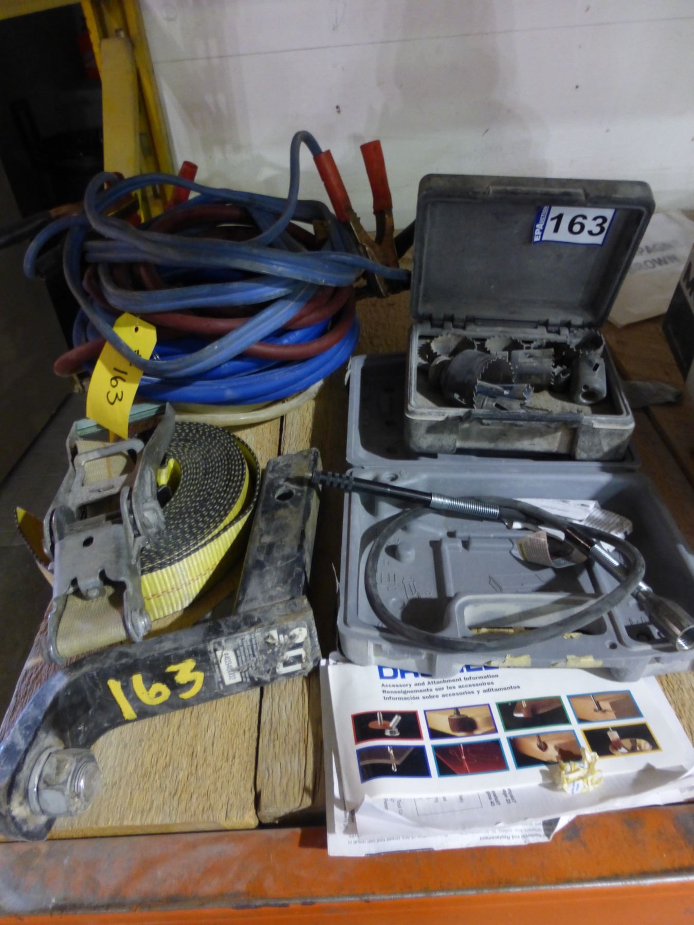 Trailer hitch, ratchet strap, air hoses, booster cables, hole saws and Dremel worm attachment