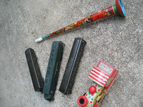 Penn line and metal circus Choo Choo by Daiya, and one bugle horn toy