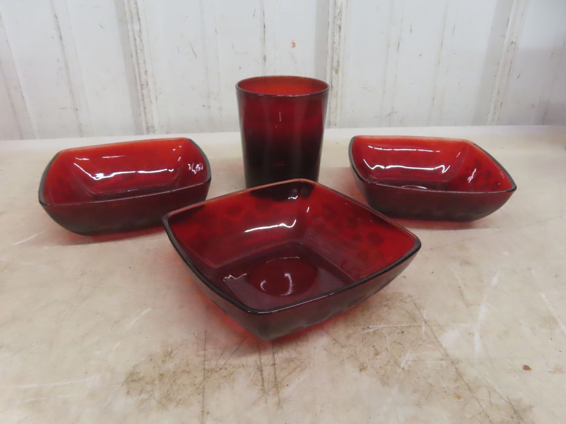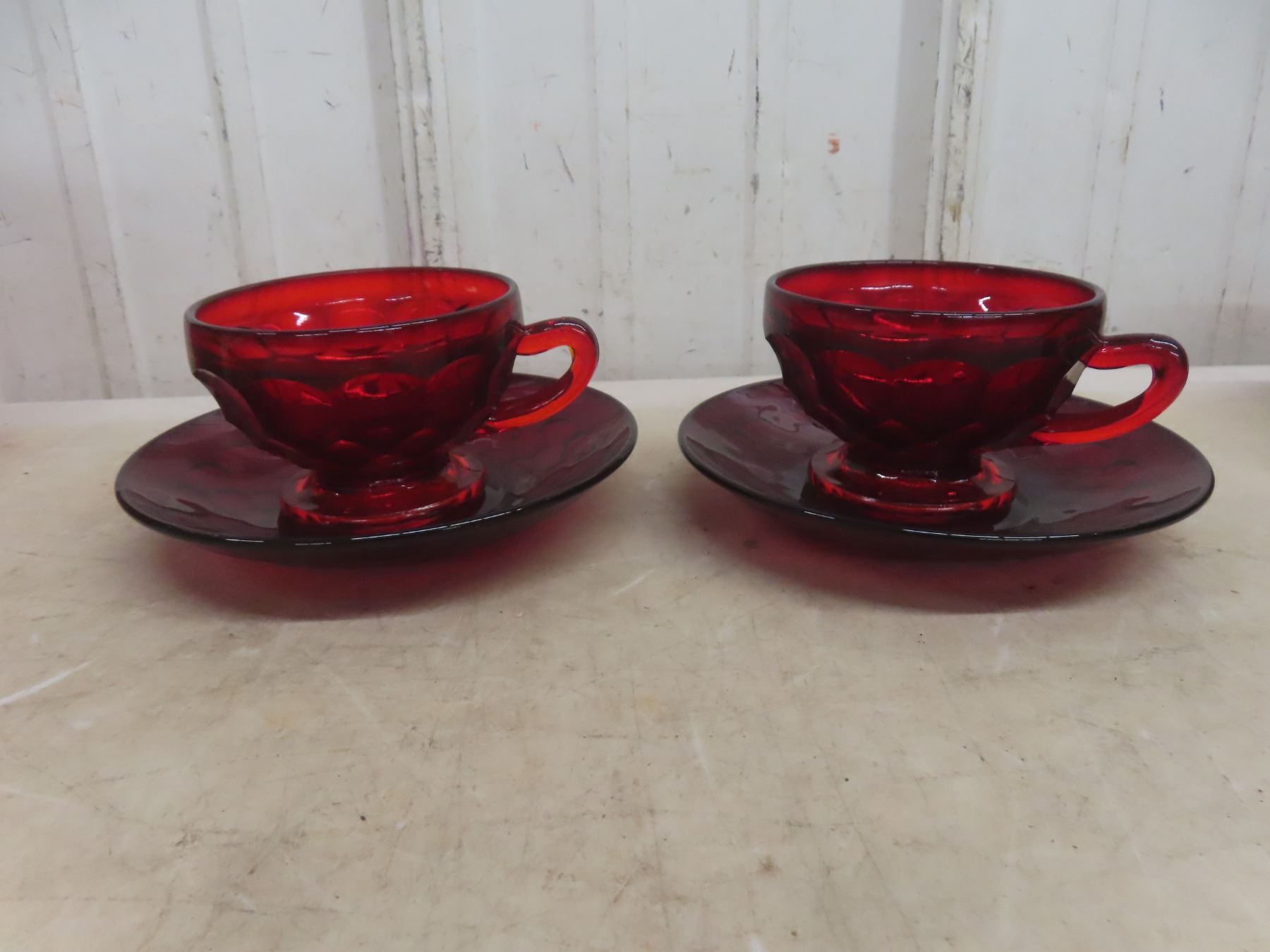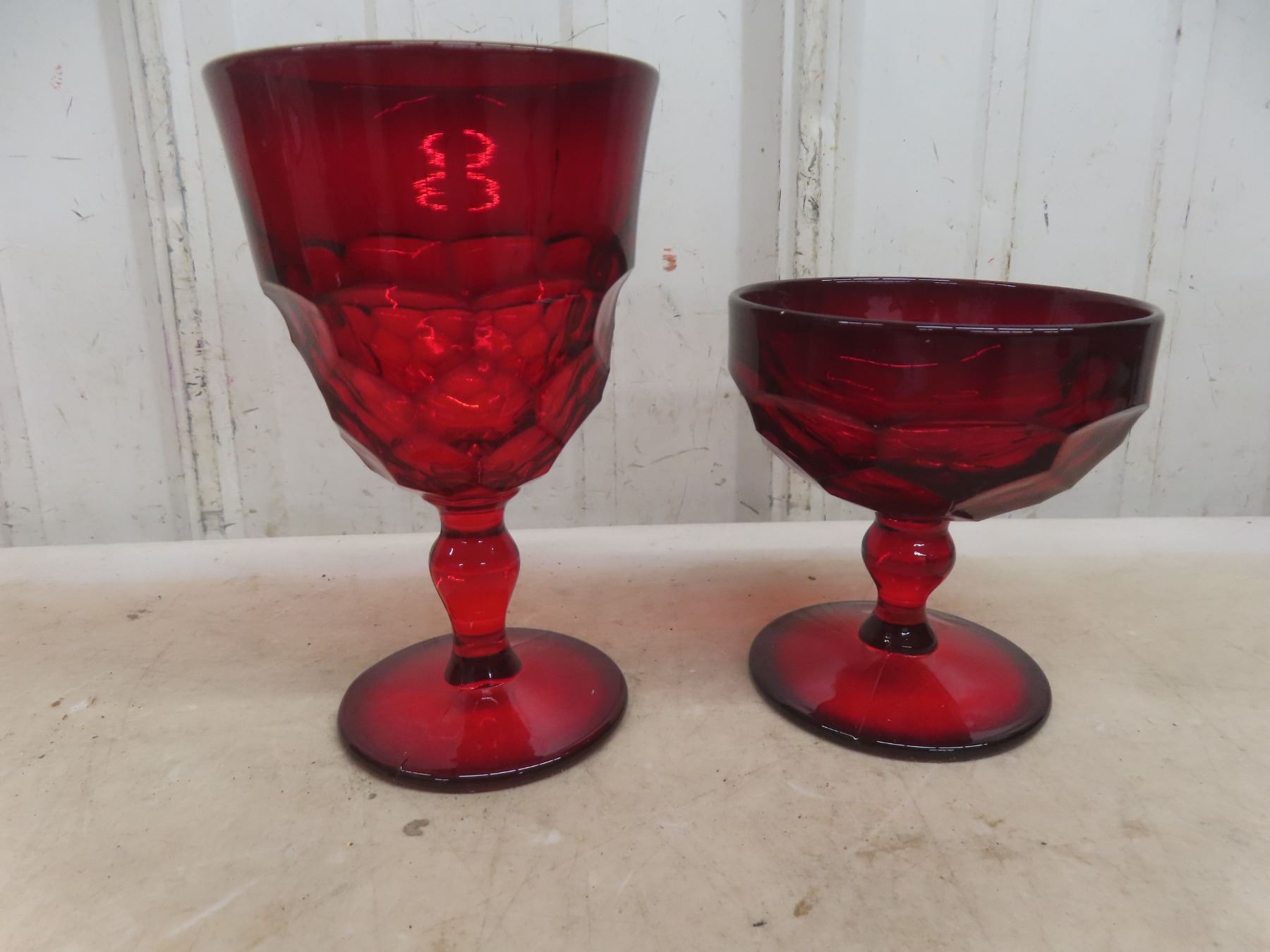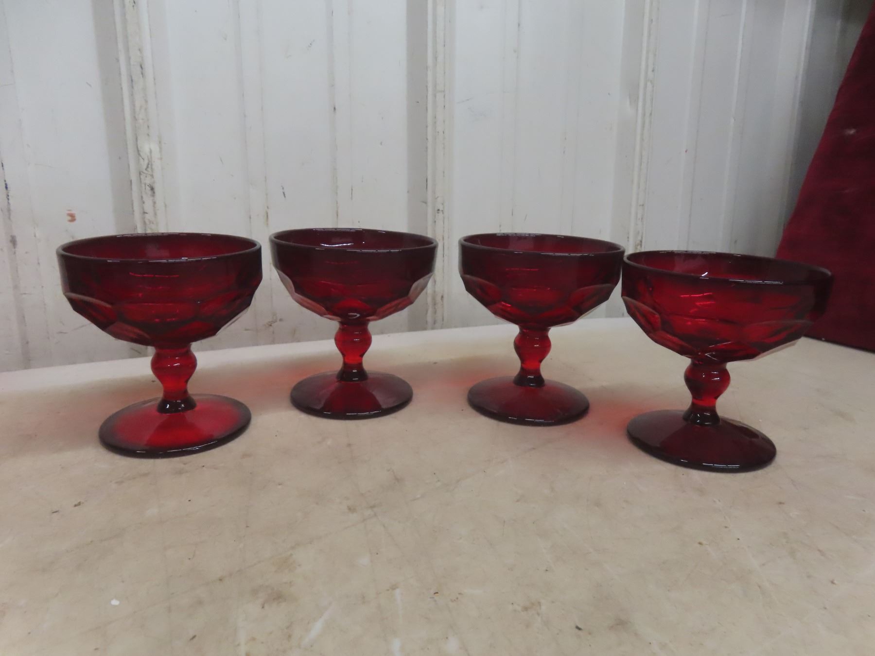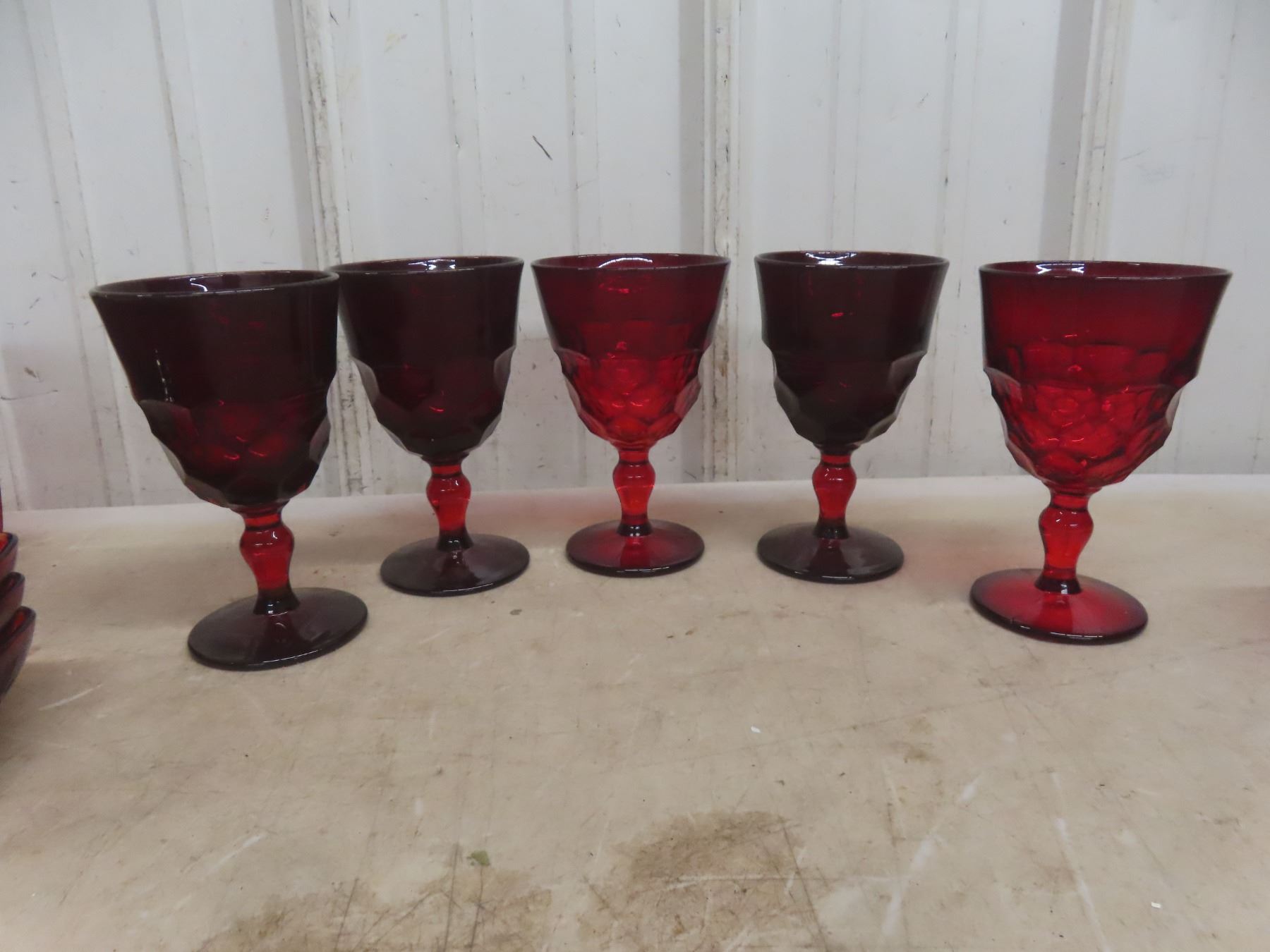 Twenty-Piece Vintage Ruby Red Glassware Set Including Sherbet Glasses, Cups, Saucers, Bowls and